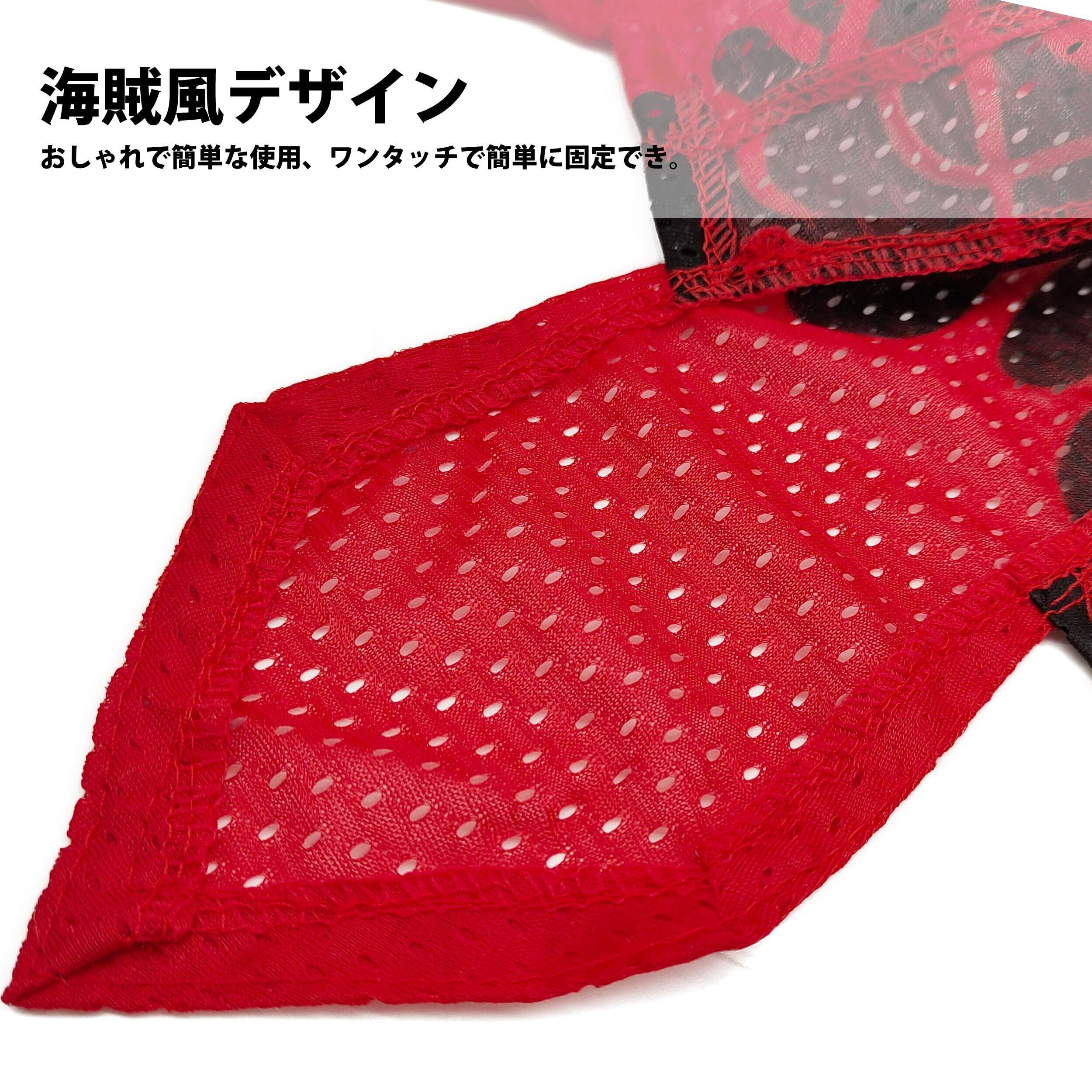 『海賊風デザイン - おしゃれで簡単な使用』このバンダナキャップは、海賊風のデザインで結び目付きのストラップが特徴。ワンタッチで簡単に固定でき、どなたでもすぐに使えます。ファッション性と機能性を兼ね備えたヘッドバンドです。