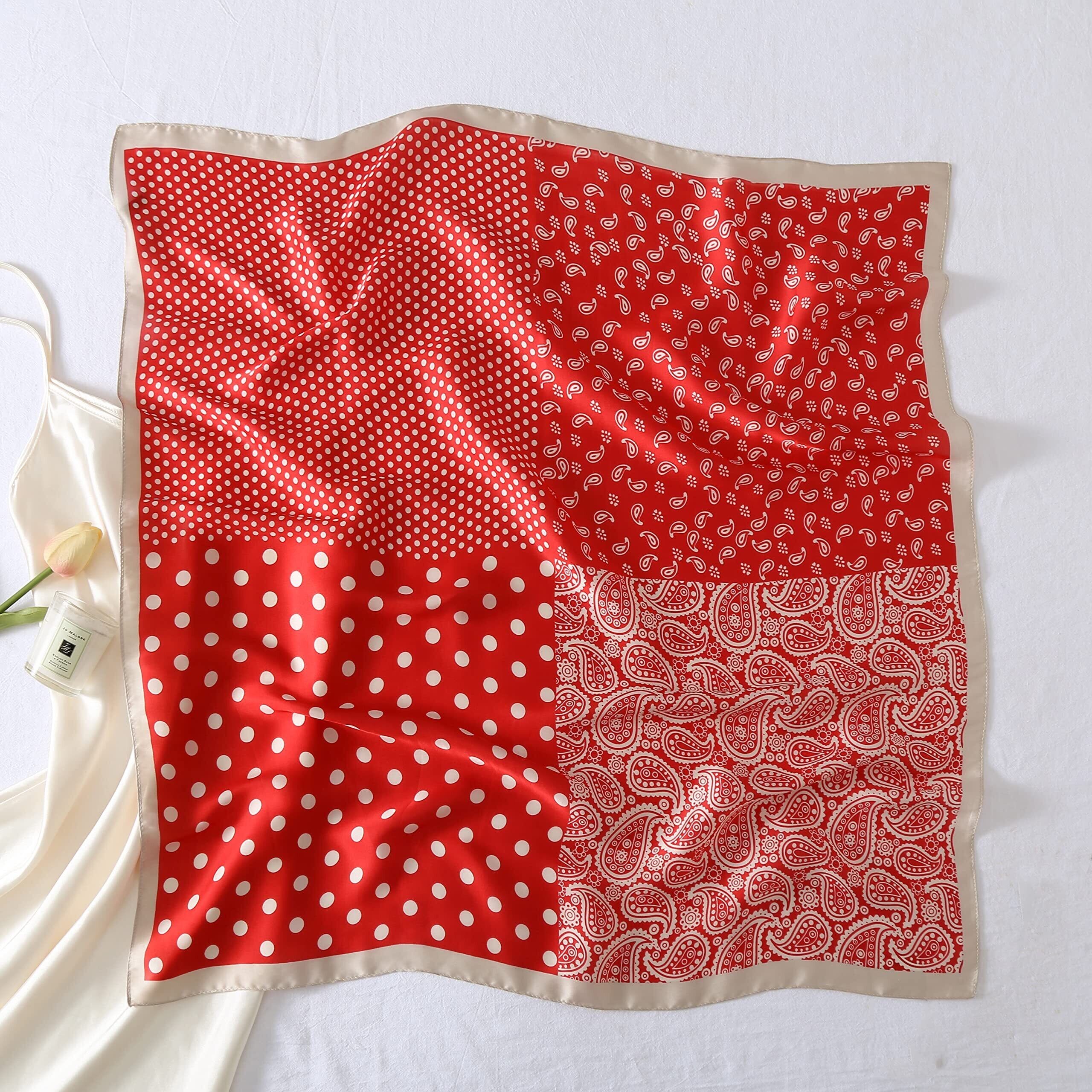 「多機能」軽量でエレガントなスカーフは、それぞれのスタイルの服を合わせることができます。どんな季節にも適しています。バッグの飾り、シュシュ、ネッカチーフ、髪飾りなどとしても使用可能!小さめサイズで、旅行などのお出かけにも重宝します。
