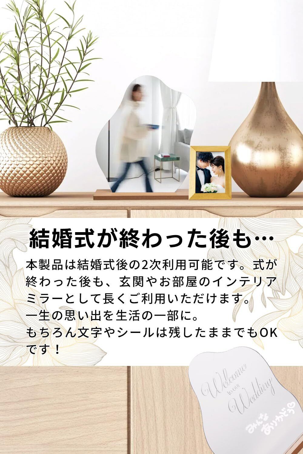 【式後もインテリアに】結婚式が終わった後も、玄関やお部屋のインテリアミラーとして長くご利用いただけます。