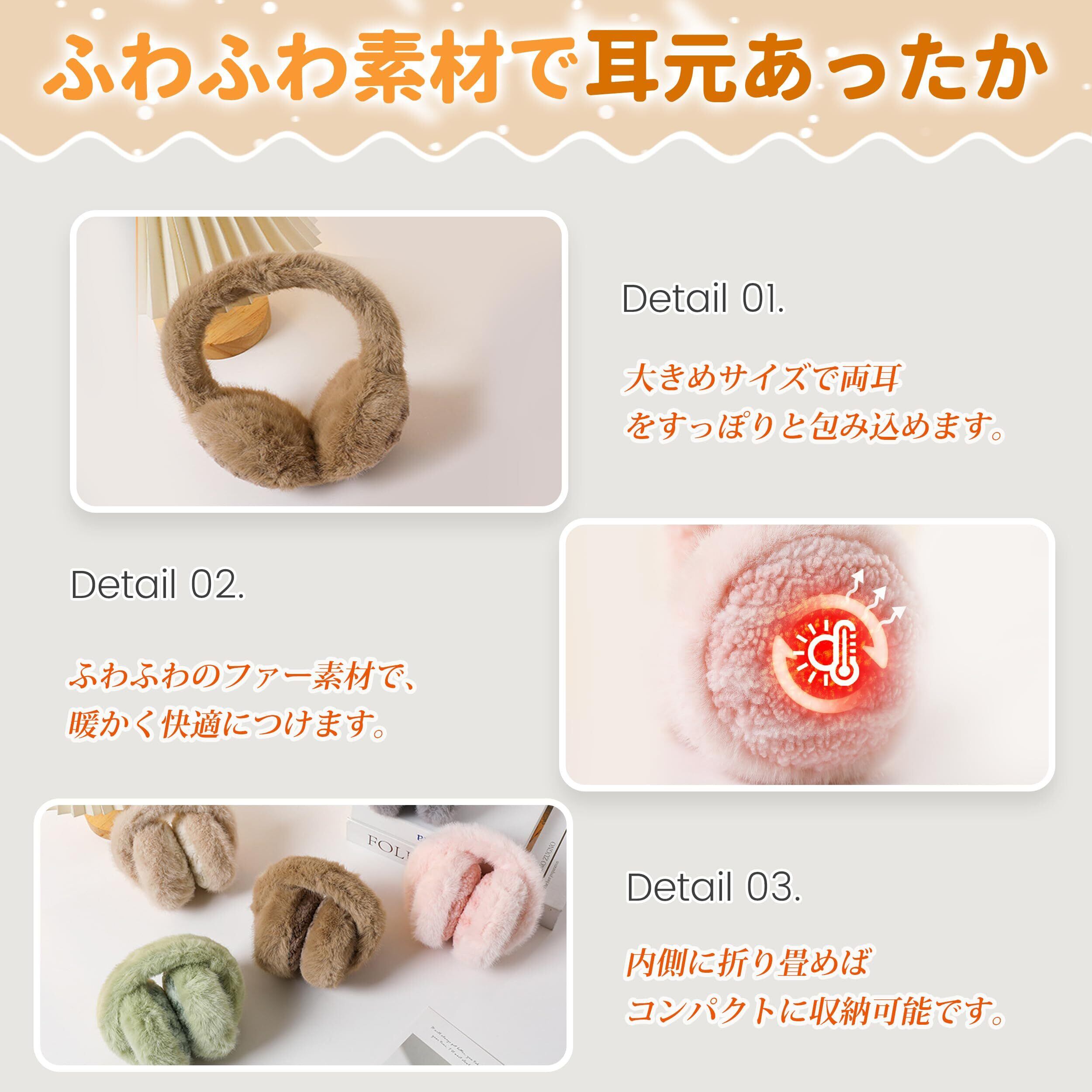 【小顔効果・お洒落と楽さの両立】このレディース イヤーマフはカバー部分が大きめデザインで、耳全体余裕あってすっぽり入り、ボリューム感により小顔効果抜群も期待できます。明るい色合いとふわふわファーが可愛らしさを引き立て、スタイリッシュな印象にも。暖かさとお洒落を両立させた防寒 耳当てで、華やかに演出。寒い季節もスタイリッシュに過ごせます!