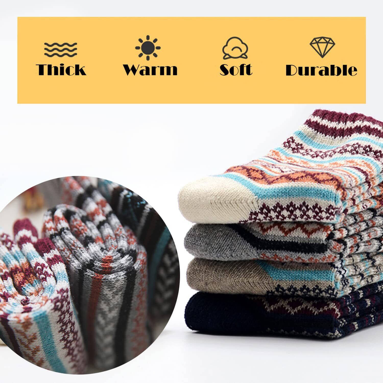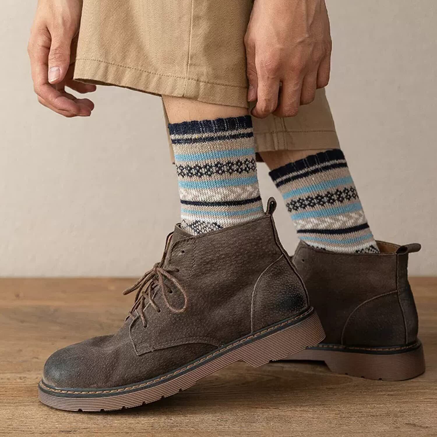 カラーバリエーション5足セット民族風メンズ靴下冬用あったかい靴下男性用防寒ソックス冬用おしゃれくつしたメンズ冬のスポーツソックス