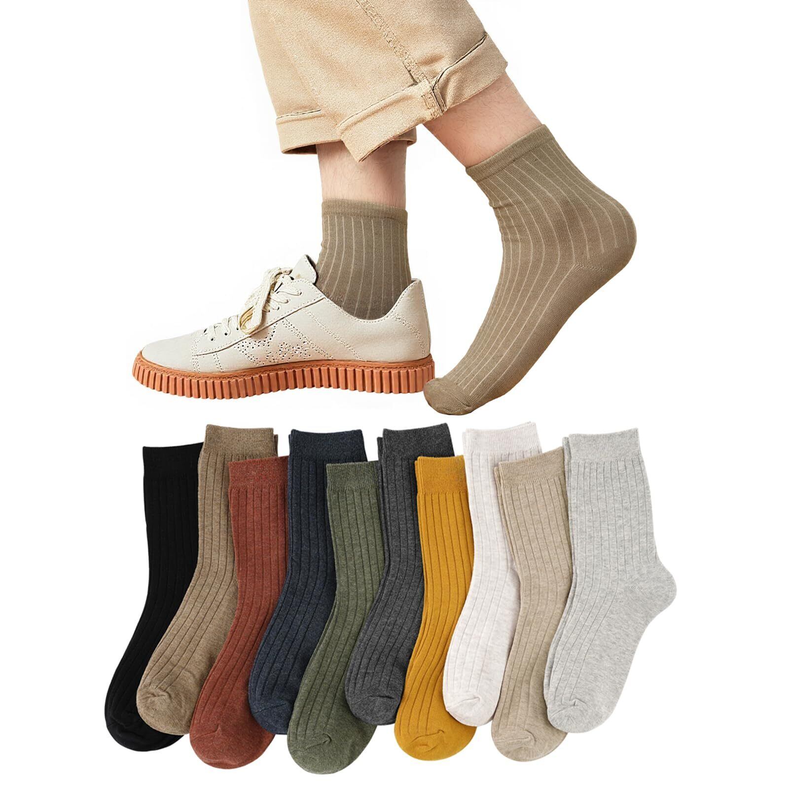 [Yazon] 靴下 メンズ 春夏秋 カラフルソックス 綿10足セット スポーツ 夏用通気吸汗 男性 ビジネス クルーソックス おしゃれ人気 旅行 出張 使い捨て靴下 丈夫 24-27cm四季用くつした