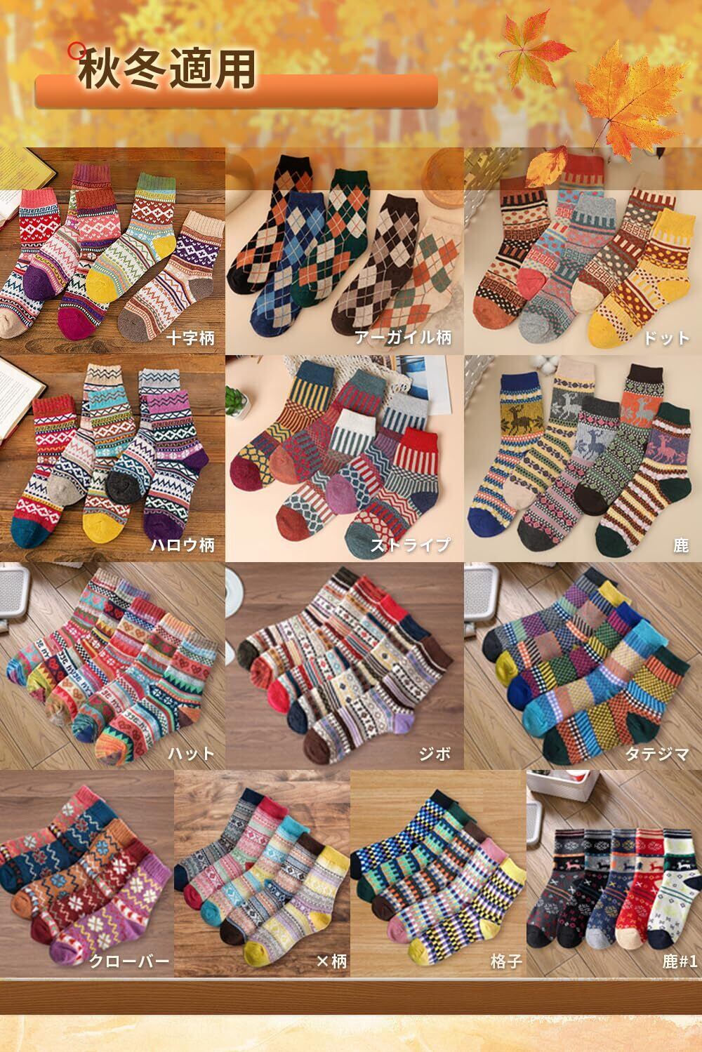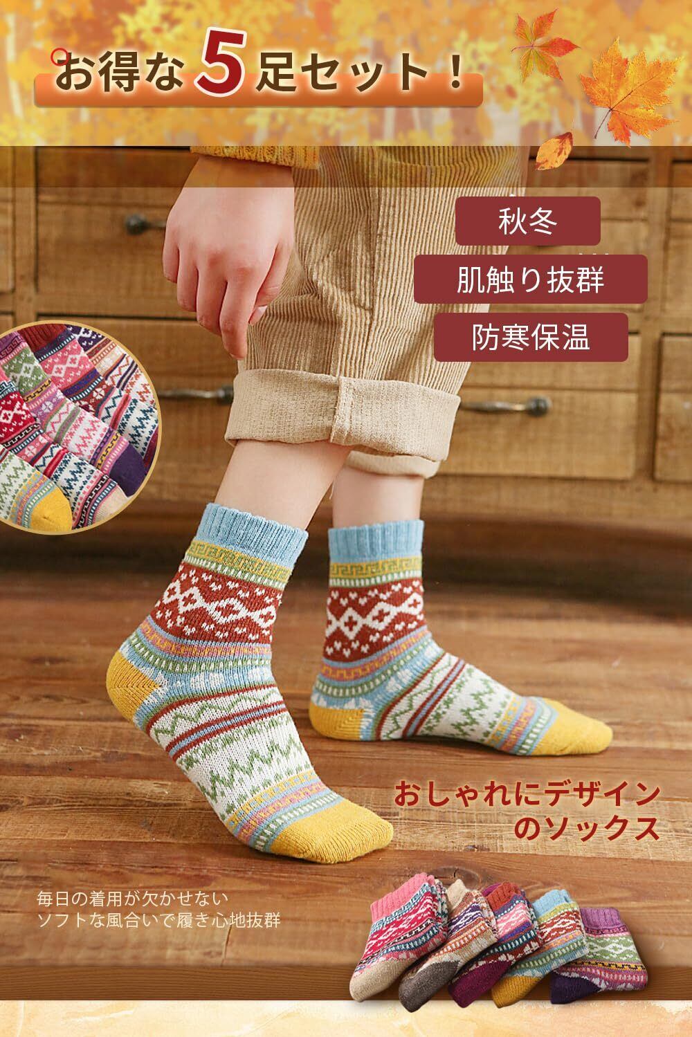【人気商品】[WindTour] 靴下 レディース 冬 ソックス 秋冬 防寒 厚手 暖かい あったか 女性用 5足セット カラフル 通気 伸縮性 履き心地 可愛い おしゃれ 登山 スポーツ