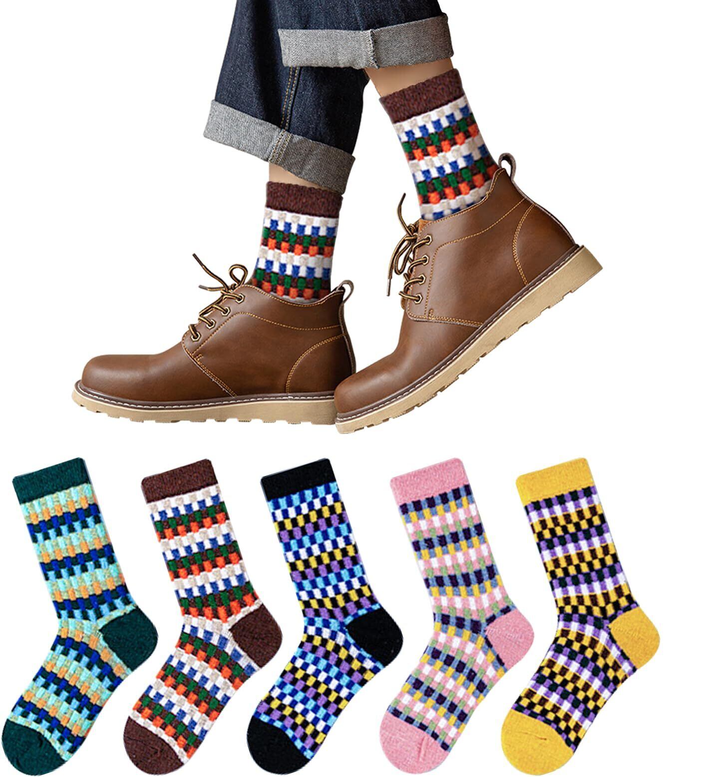 【5足セットおしゃれにデザイン靴下】秋冬の必需品の厚みのある暖かい靴下。 まとめお買い一組5足セット靴下、各一足の色はそれぞれ異なって、一回購入して、日常の着換えのニーズを満たすことができます。(サイズ:約22~25cm)