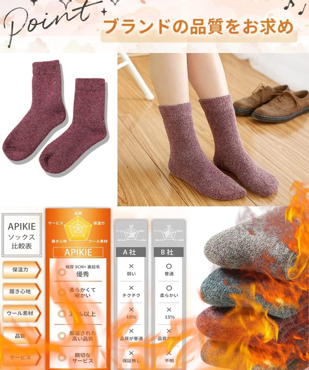 [APIKIE] 靴下 レディース 冬 北海道で履いても暖かい・極厚雲感裏パイル・ウール30%以上 ウールソックス 防菌防臭 防寒保温 蒸れず 耐久性 伸縮性 カジュアルソックス 男女兼用 靴下厚手 スキー 室内 3足/5足セット