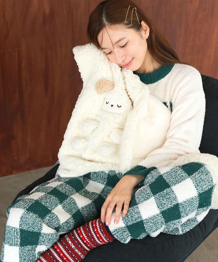表面は手触りの良いモコモコボア、裏面はフリース素材で優しい肌触り。