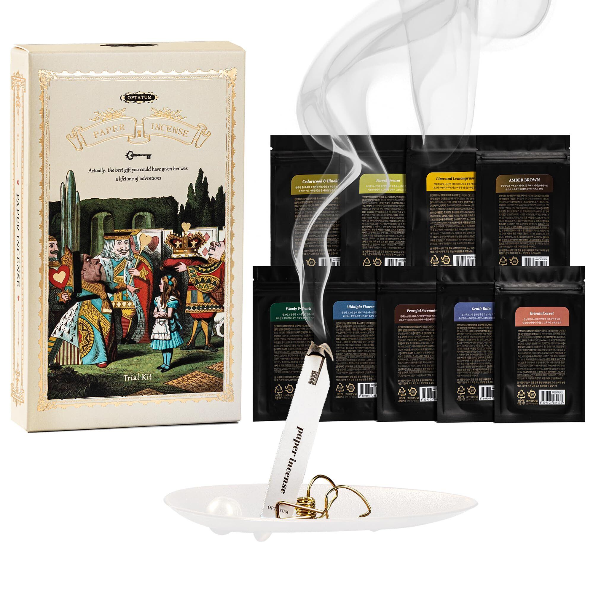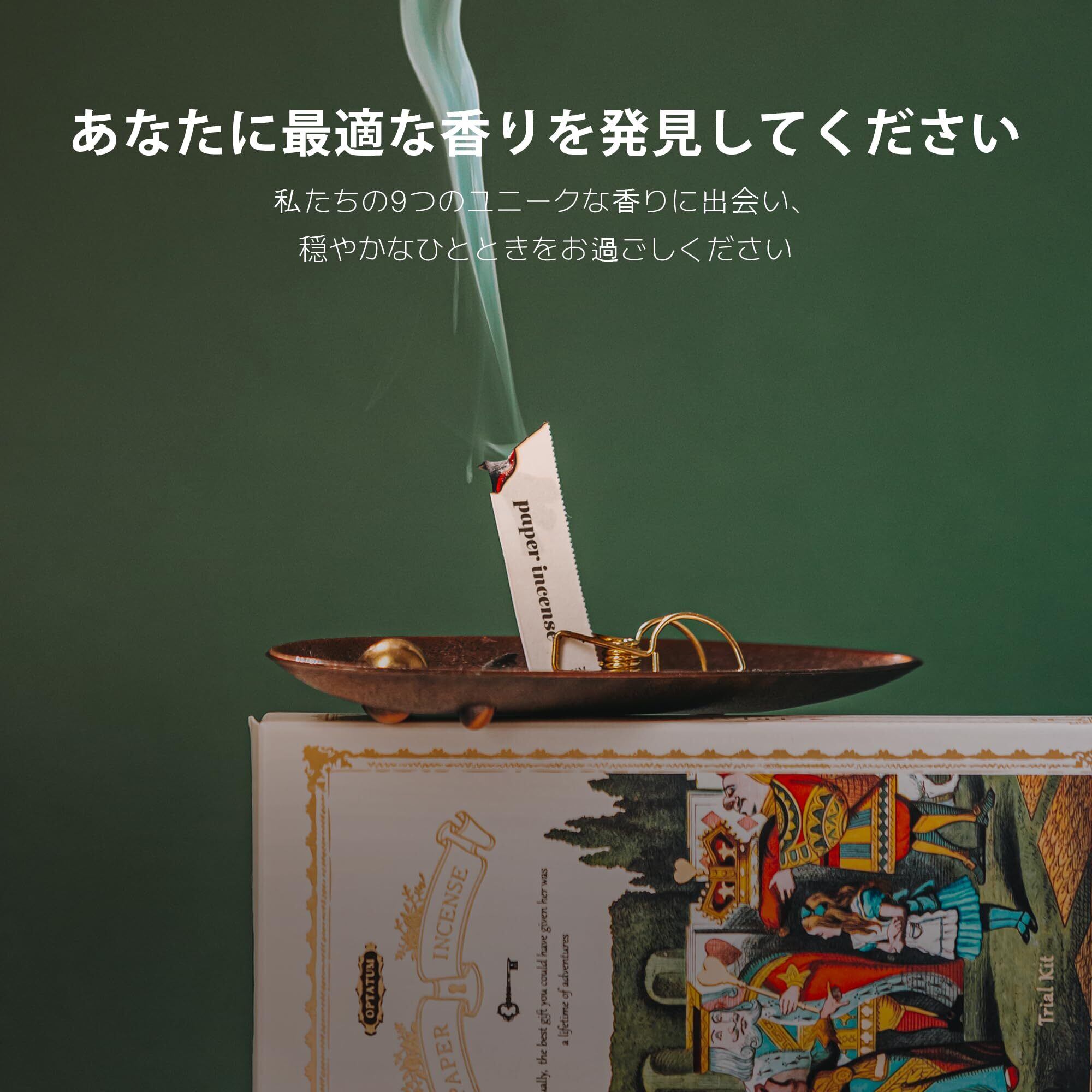 【在庫処分】OPTATUM ペーパーインセンス トライアルキット - 36枚入り多様な香りの紙セット | 9種の特別な香りからあなたにぴったりの一つを見つけてください | リラックスや穏やかな時間に最適なヴィンテージ風ギフト