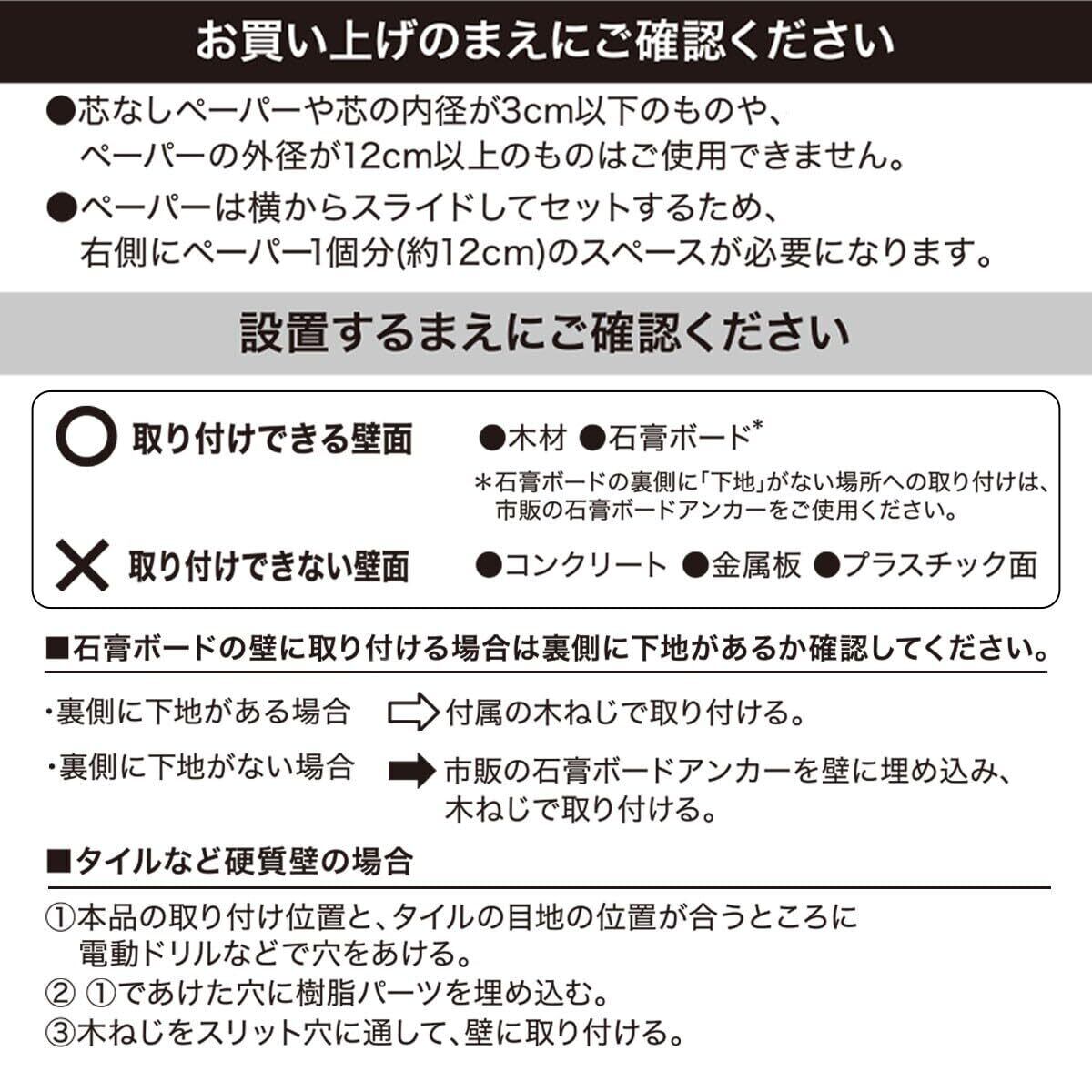 ・芯なしペーパーや芯の内径が3cm以下のものや、ペーパーの外径が12cm以上のものはご使用できません。