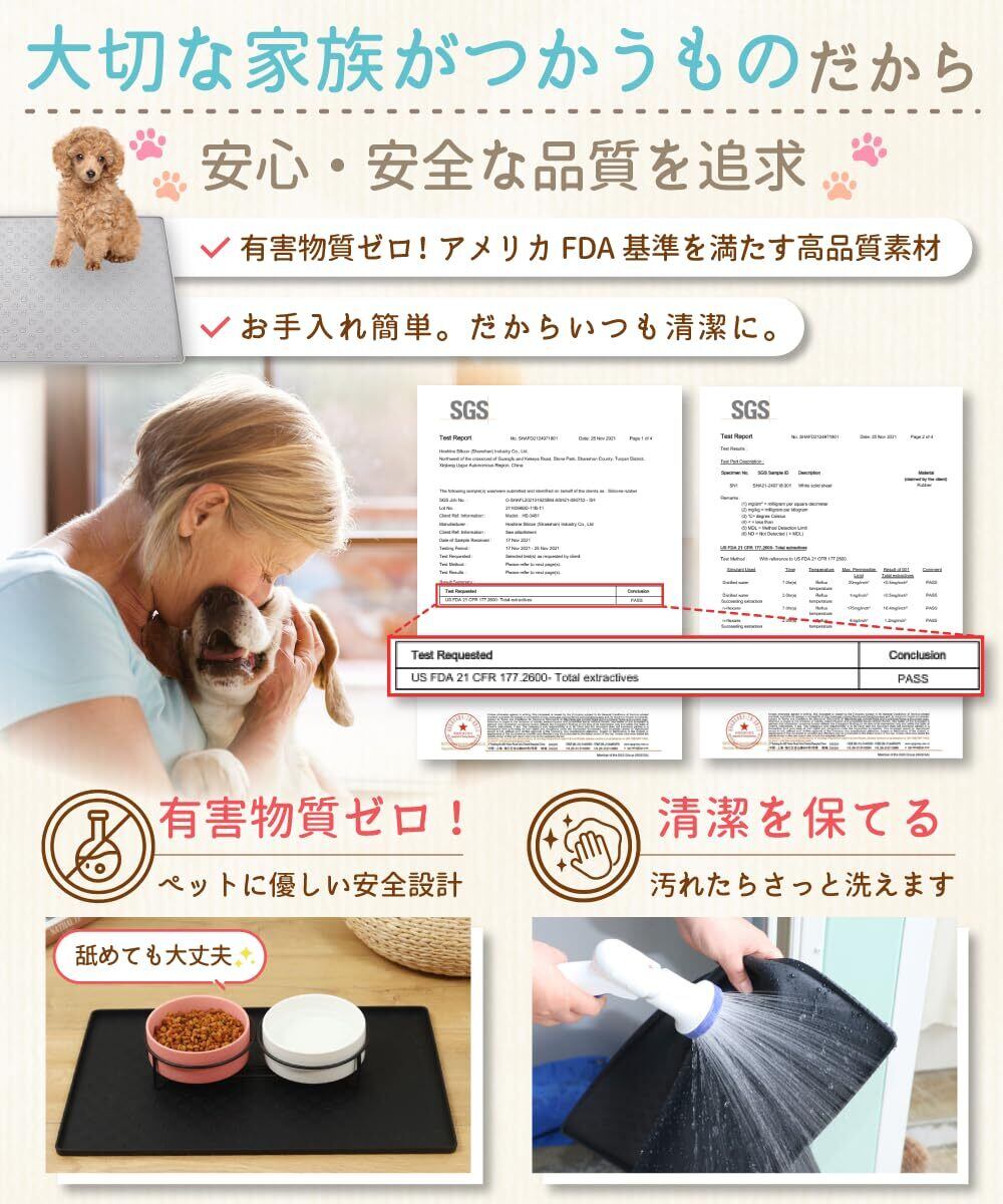 アメリカFDAの安全基準をクリアしているので、ペットにも安心安全な素材。
