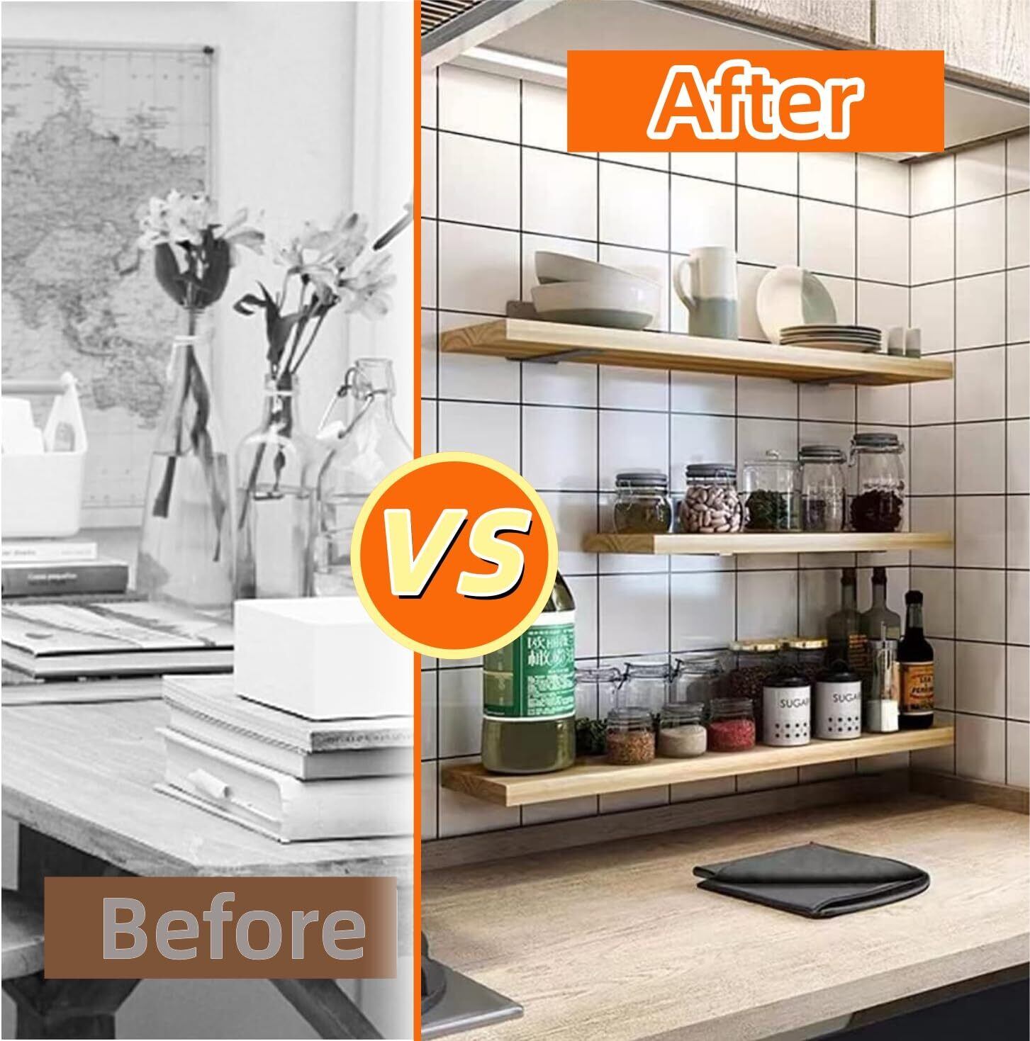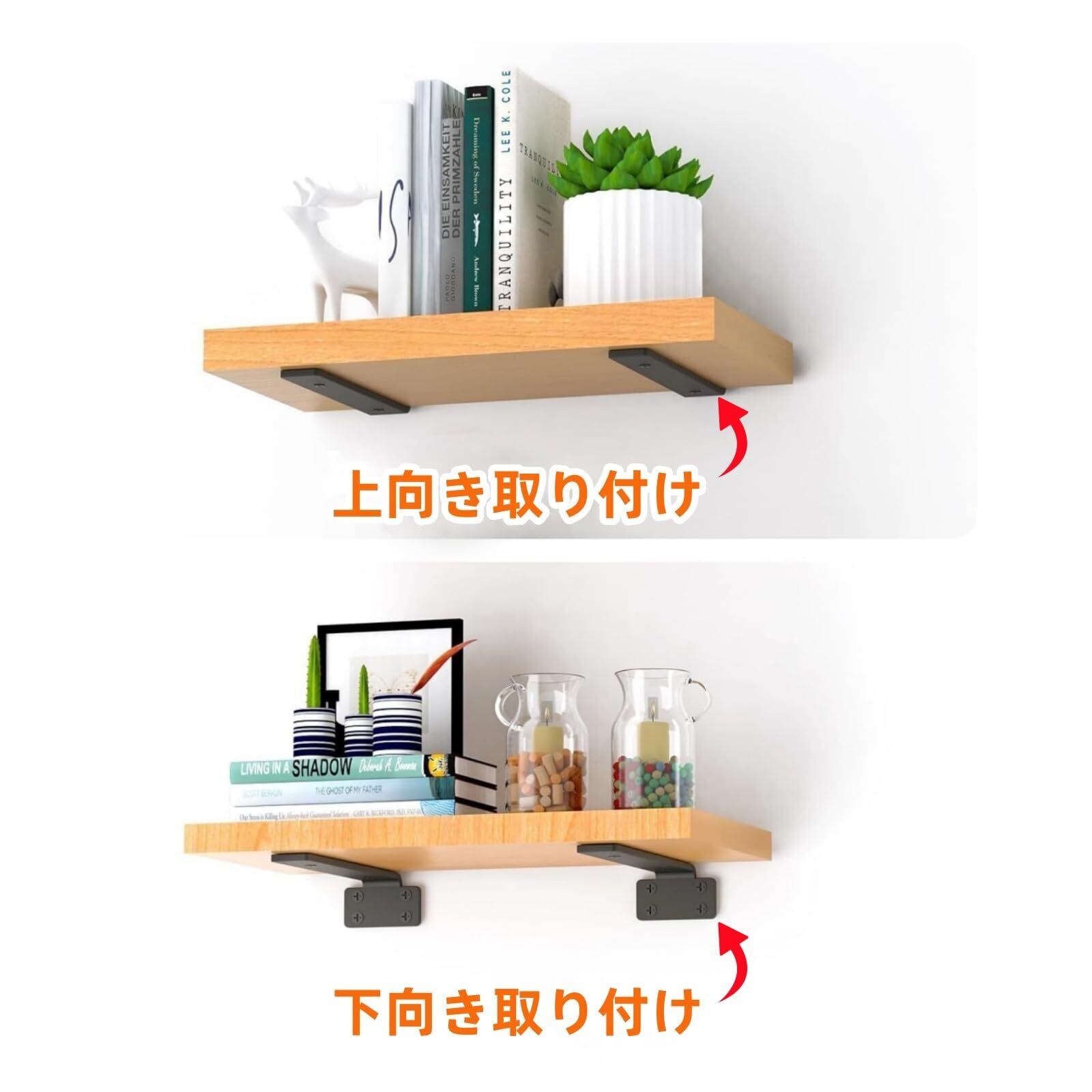 【隠し棚受け金具】:清潔でモダンな外観を維持しながら、実用的な収納スペースを確保します。一度取り付けられると、これらの隠さ棚受け金具は完全に見えなくなり、浮いている棚のように見えます。また、壁に4つの穴があり、より強力な支持力があります。頑丈で多用途の壁掛けブラケットは、より多くのスペースを提供し、家をよりきれいに整頓します。