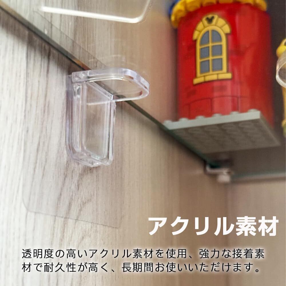 棚受け L字型 板 ブラケット 接着 粘着フック 16個セット 強力粘着タイプ 支え ダボなし 穴開け不要 透明 棚支え