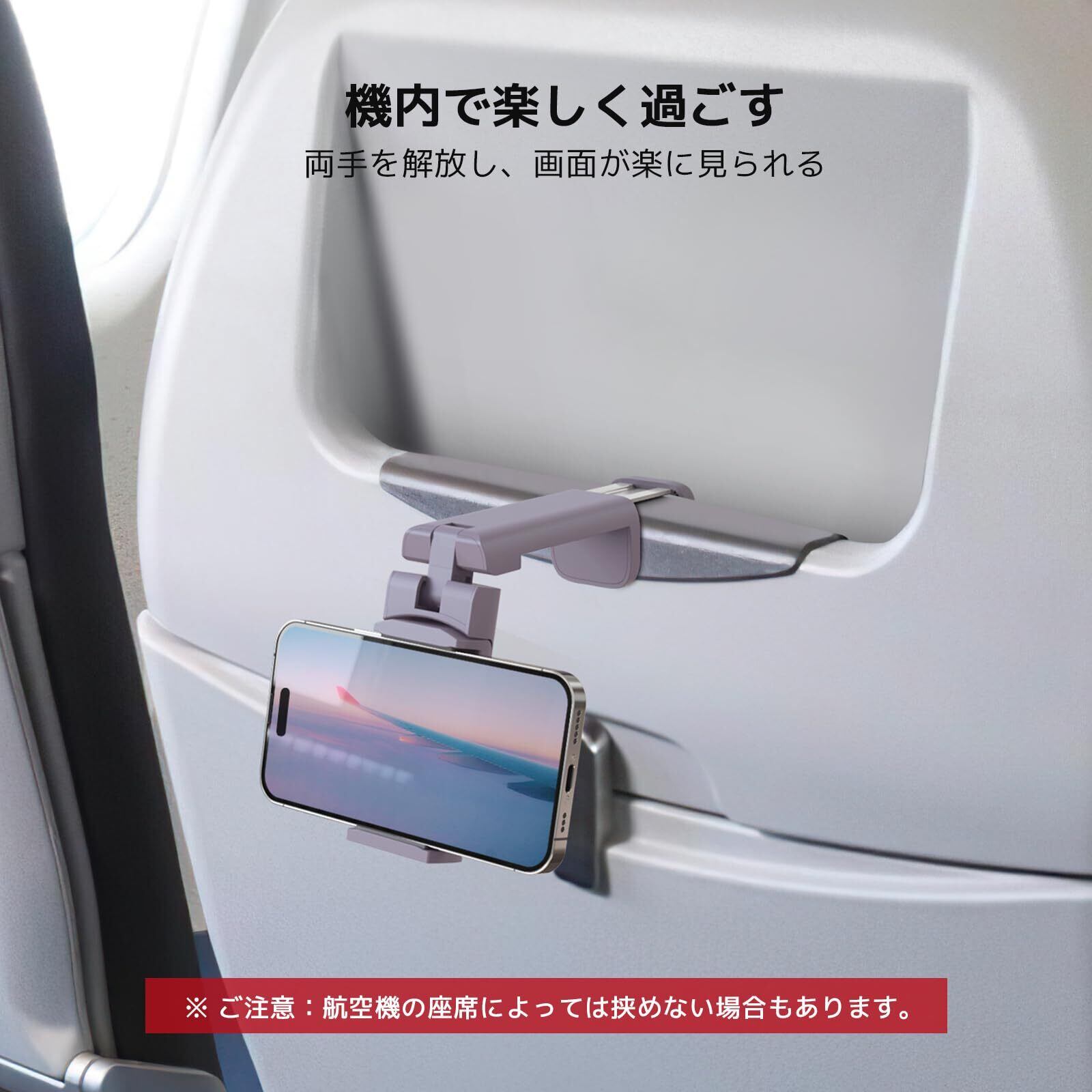 【2 Wayスマホホルダー】置き型タイプと挟み型タイプの2種類固定方法があり、飛行機客室の折りたたみ式トレイ、スーツケースのキャリーバー、どこでも設置可能です。オフィス、ベッドサイド、キッチン、ジム、ホテル、車内などの場所で、両手を解放して自撮り、動画視聴、ビデオ通話などを楽しみます。