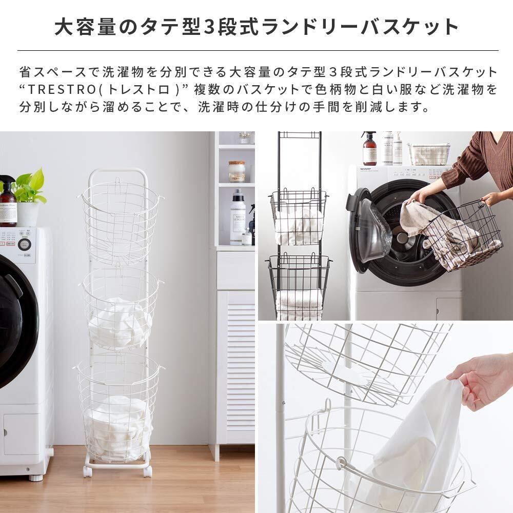 【在庫処分】エア・リゾーム ランドリーバスケット 3段 スリム キャスター付き おしゃれ ランドリーワゴン TRESTRO〔トレストロ〕 スクエア(ブラック),3段