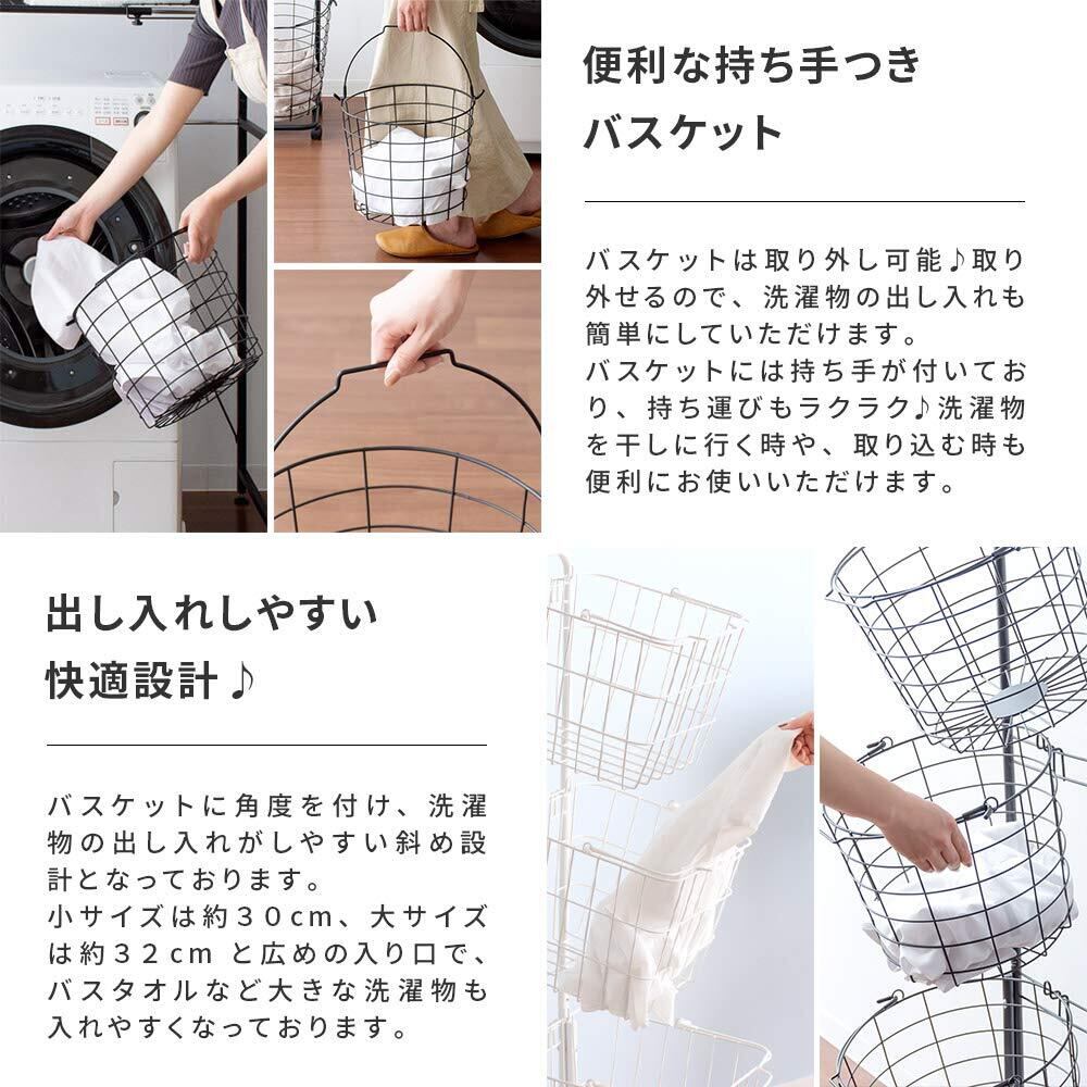 【バスケット内寸】ラウンド/〔大〕約直径32×高さ36cm、〔小〕約直径30×高さ24cm、スクエア/〔大〕約幅・奥行き33×高さ36cm、〔小〕約幅・奥行き30×高さ25cm