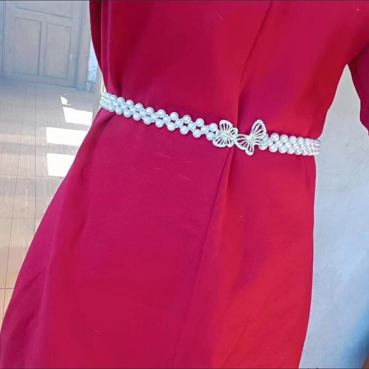 [Lanito] レディースベルト パールベルト 細ベルト 蝶 ラインストーン サッシュベルト サッシュベルト ウエストベルト 伸縮性のあるベルト 高見え パーティー 結婚式