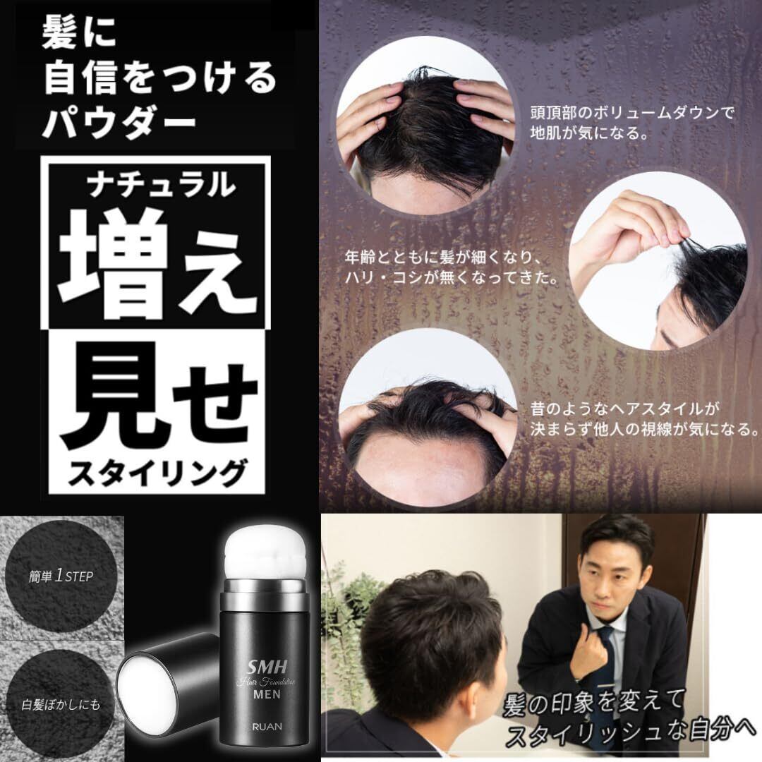 SMHメンズヘアファンデーション 20g No.1 ブラック 薄毛 抜け毛 円形脱毛症 白髪 対策 増毛パウダー 髪 頭皮 分け目 生え際用 薄毛隠し 白髪隠し