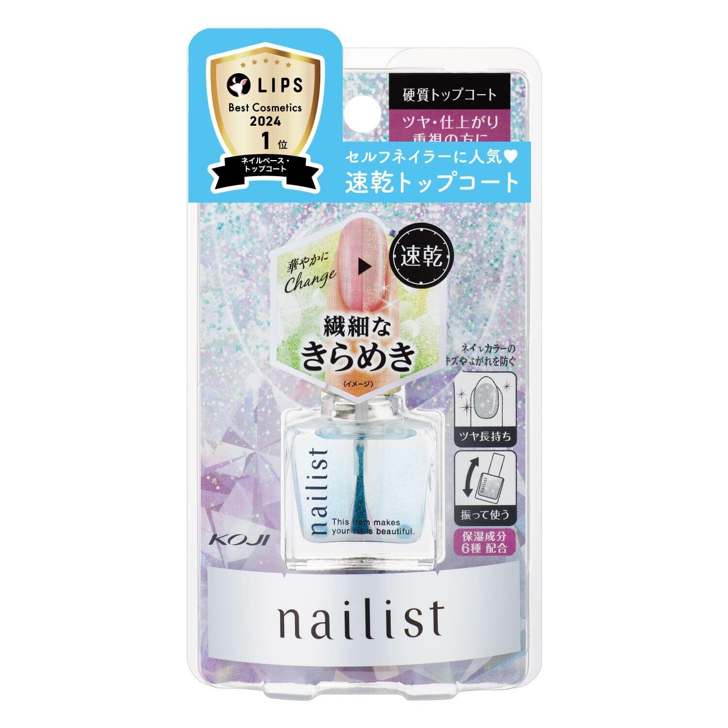 ●華やかな印象へチェンジできる、高輝度パール入り硬質トップコート。 ●速乾タイプ●硬質成分配合●保湿成分配合
