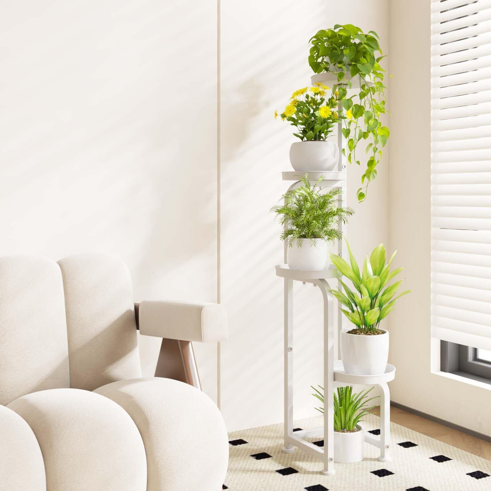 Bamworld フラワースタンド 室内 4段観葉植物台 プランタースタンド屋外 花台 おしゃれ 高さ116cm以上 ガーデニングラック リビング 寝室 ベランダ 白