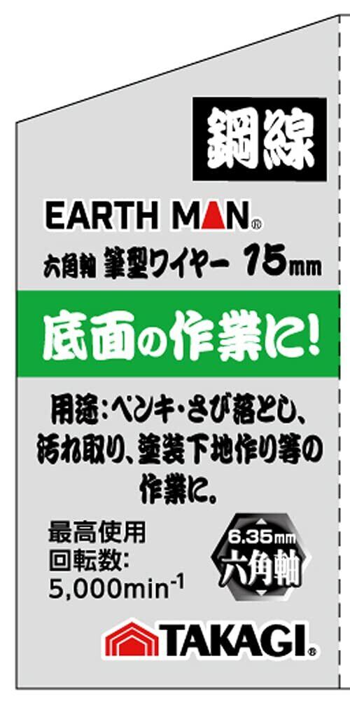 高儀(Takagi) EARTH MAN 六角軸 筆型ワイヤーブラシ 鋼線 15mm