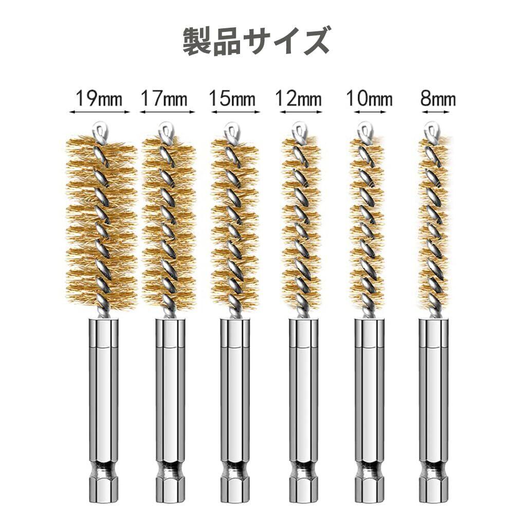 真鍮ブラシ ワイヤーブラシ 六角軸 6個入り(8MM、10MM、12MM、15MM、17MM、19MM)ドリル ブラシ 電動ドリル用研磨ブラシ 掃除・研磨・錆取り・洗浄用パイプブラシ