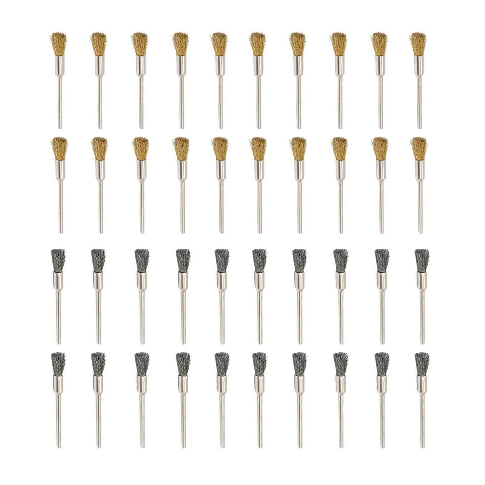 YFFSFDC ルーター ブラシ 40個入り 筆型 真鍮ワイヤーブラシ 鋼ブラシ 2.35mm軸 研磨ブラシ ドレメル 回転ツール アクセサリー