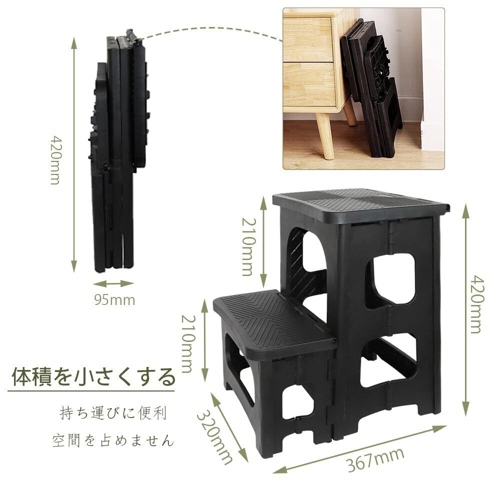 GOODCHI 踏み台 脚立 折りたたみ式 ステップ台 2段 ポリカーボネート製 耐荷重150kg 高さ43cm 軽量 滑り止 折りたたみチェア 玄関台 洗車 踏み台 (ブラック)