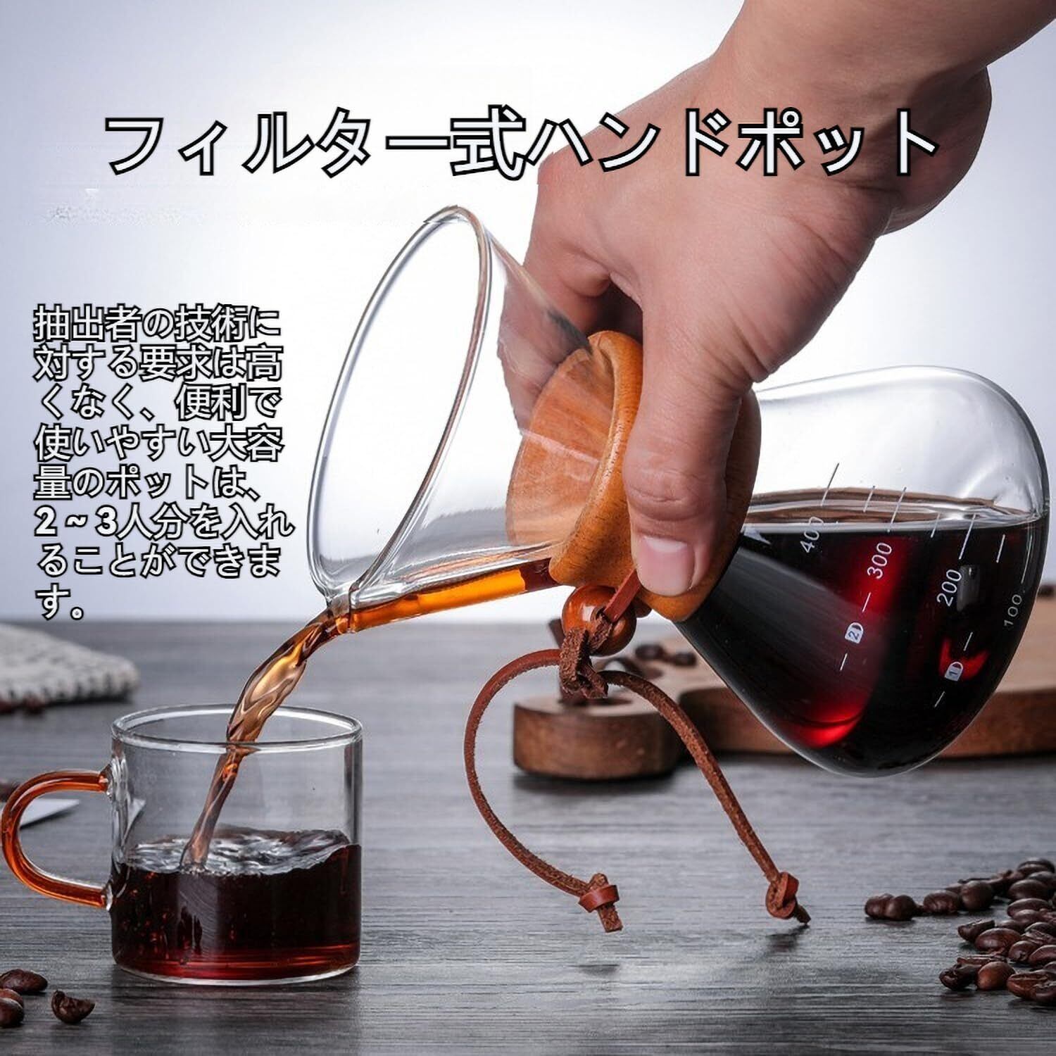 コーヒーサーバー 耐熱ガラス 木製ホルダー コーヒードリッパー 400ml 目盛付き 1~2人用 コーヒー ドリップ 器具 電子レンジ可 ステンレスフィルター 繰り返し使え ハンドドリップコーヒーサーバー コーヒードリップセット 喫茶店 カフェ