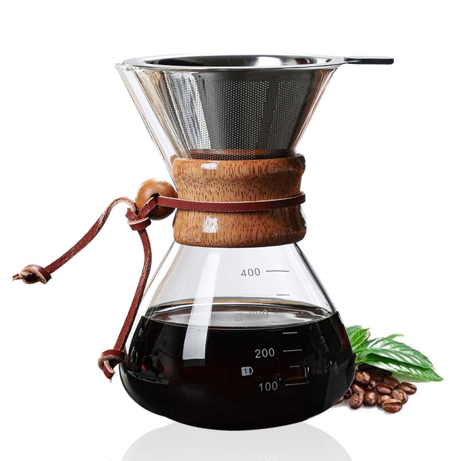 【特価セール】コーヒーサーバー 耐熱ガラス 木製ホルダー コーヒードリッパー 400ml 目盛付き 1~2人用 コーヒー ドリップ 器具 電子レンジ可 ステンレスフィルター 繰り返し使え ハンドドリップコーヒーサーバー コーヒードリップセット 喫茶店 カフェ