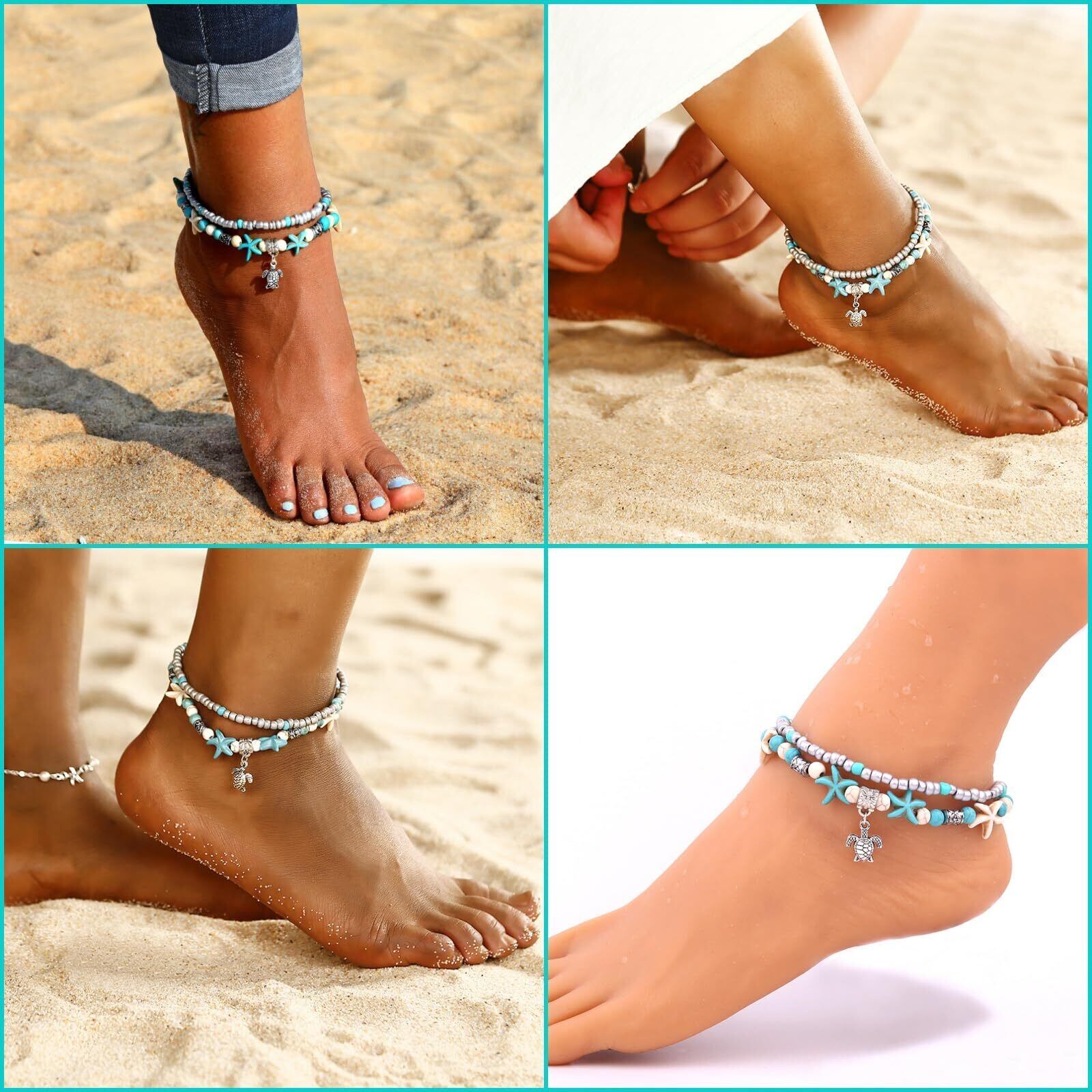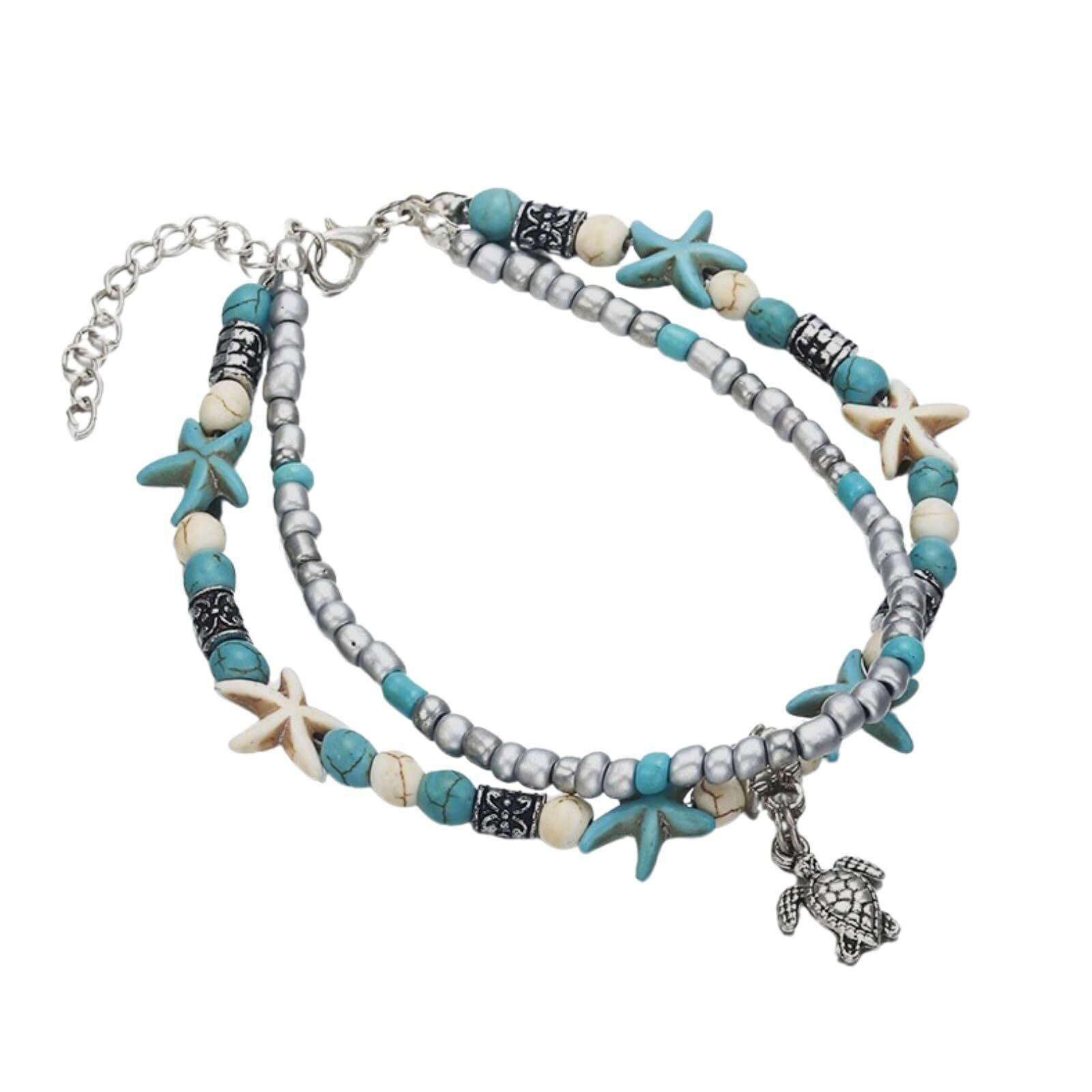ターコイズブルーの石と亀の装飾がかわいいアンクレットは調節可能なチェーンが付いており、足首のサイズに合わせて快適に装着できます。 シルバーの石のデザインとターコイズブルーの石、亀の装飾を使用した鮮やかで個性的なアンクレットは足元のファッションのアクセントとして、 とても重宝するアイテムです。