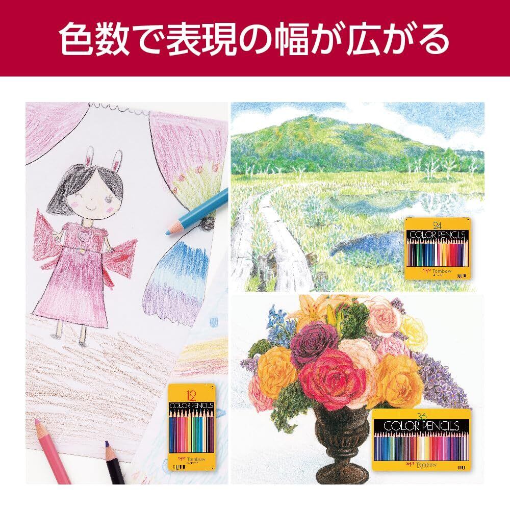 鮮やかな発色、優れた定着性、なめらかなタッチの高品質色芯のトンボの色鉛筆。