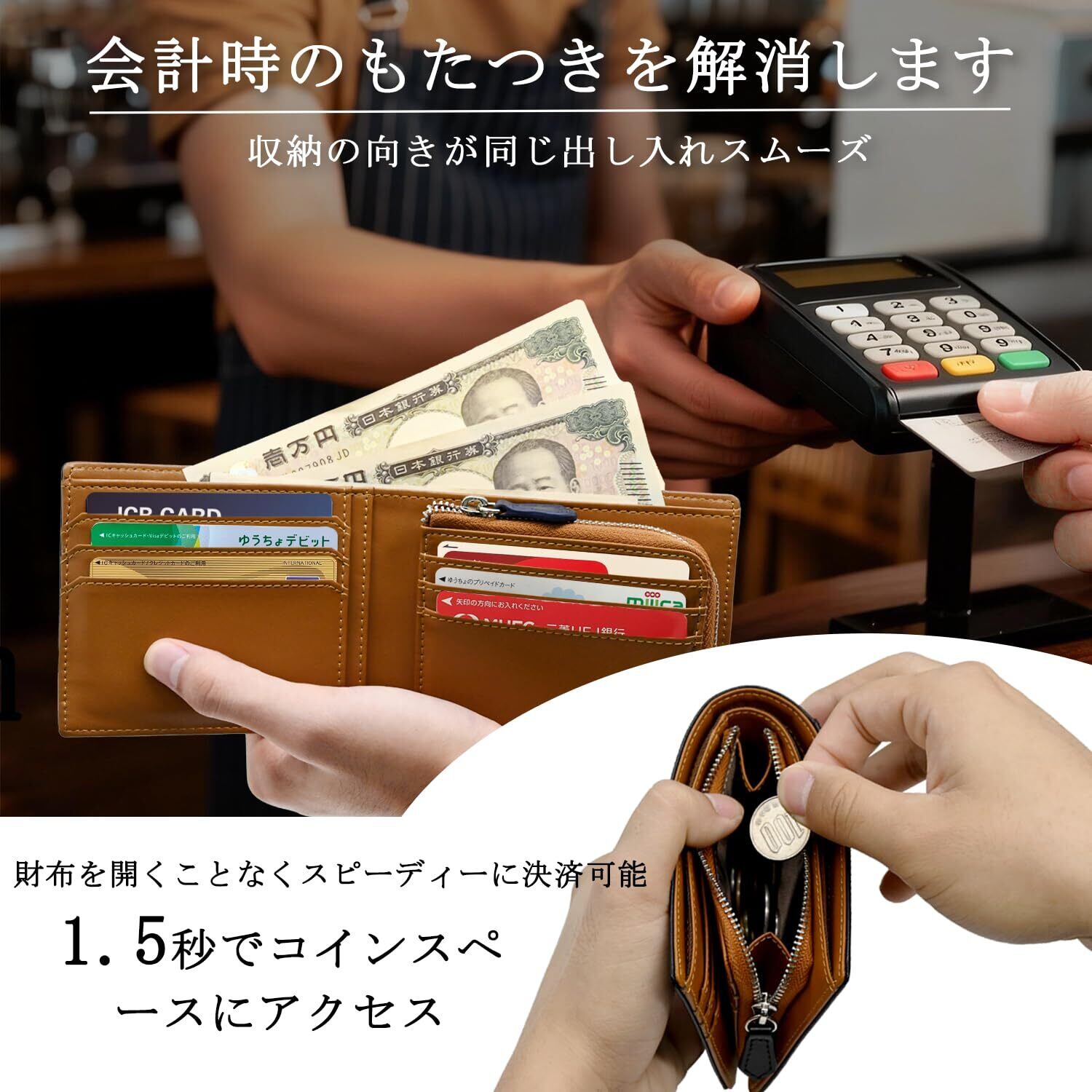 【使いやすさを極めた設計】YKK製のL字ファスナーを採用した小銭入れで、片手開閉が可能な小さい 財布。紙幣入れには仕切りがあり、お札とレシートをきれいに分けて整理できるので綺麗に収納できます。さらに、内部にはAirTag・SDカード・SIMカードなどを収納できる自由ポケットも搭載。紙幣と小銭が同じ方向に収納されており、出し入れがしやすいので、お会計の際もスマートで便利です、使い勝手が抜群です。必要な機能を一つにまとめた実用的なコンパクト財布で。