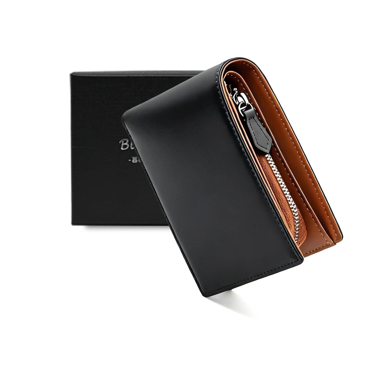 [Bluesay] 財布 メンズ 2つ折り 栃木レザー 本革 大容量 二つ折り財布 YKKファスナー 小銭入れ 日本の熟練職人の技 ふたつおり 財布 コンパクト 折りたたみさいふ 男性 紳士用 ビジネス スタイリッシュ ギフトBOX入り プレゼント 父の日 誕生日 (ブラック)