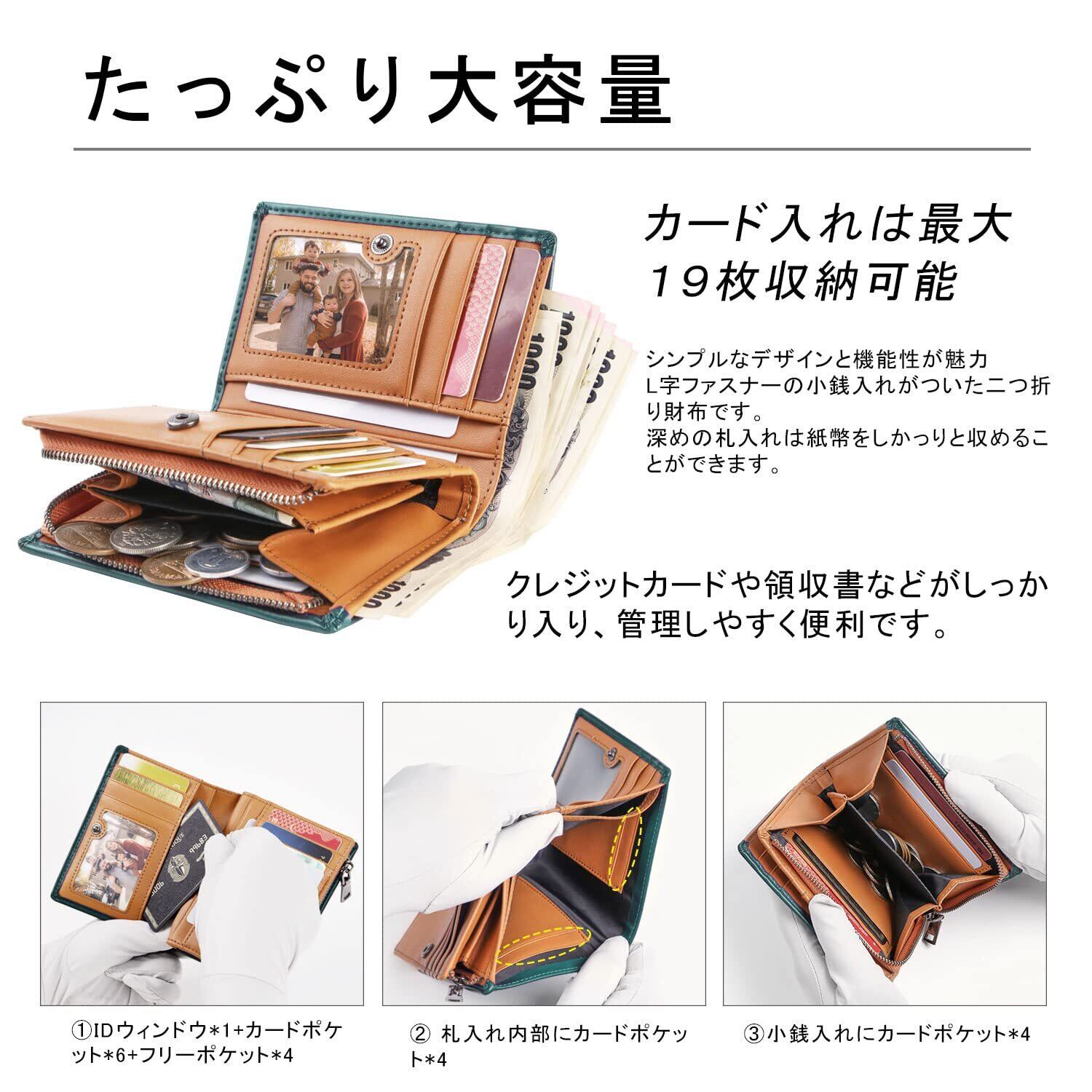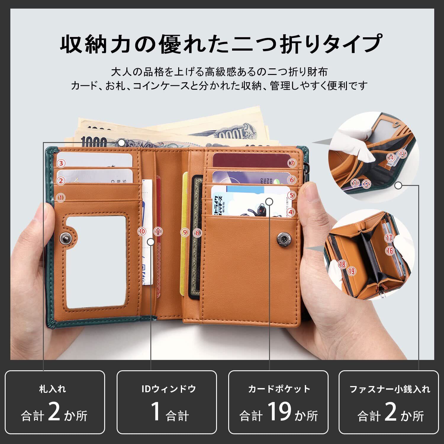 【財布 メンズ 2つ折り-商品説明】:(カラー):グリーン&ブラウン;(サイズ):約12.2*9.7*2.5cm;(仕様):カード入れx19( IDウィンドウ×1)(フリーポケット ×4)、札入れx2、L字型ファスナー小銭入れ× 1(仕切りある);職人がひとつひとつ丁寧に製作いたしまいした二つ折り財布メンズが登場。