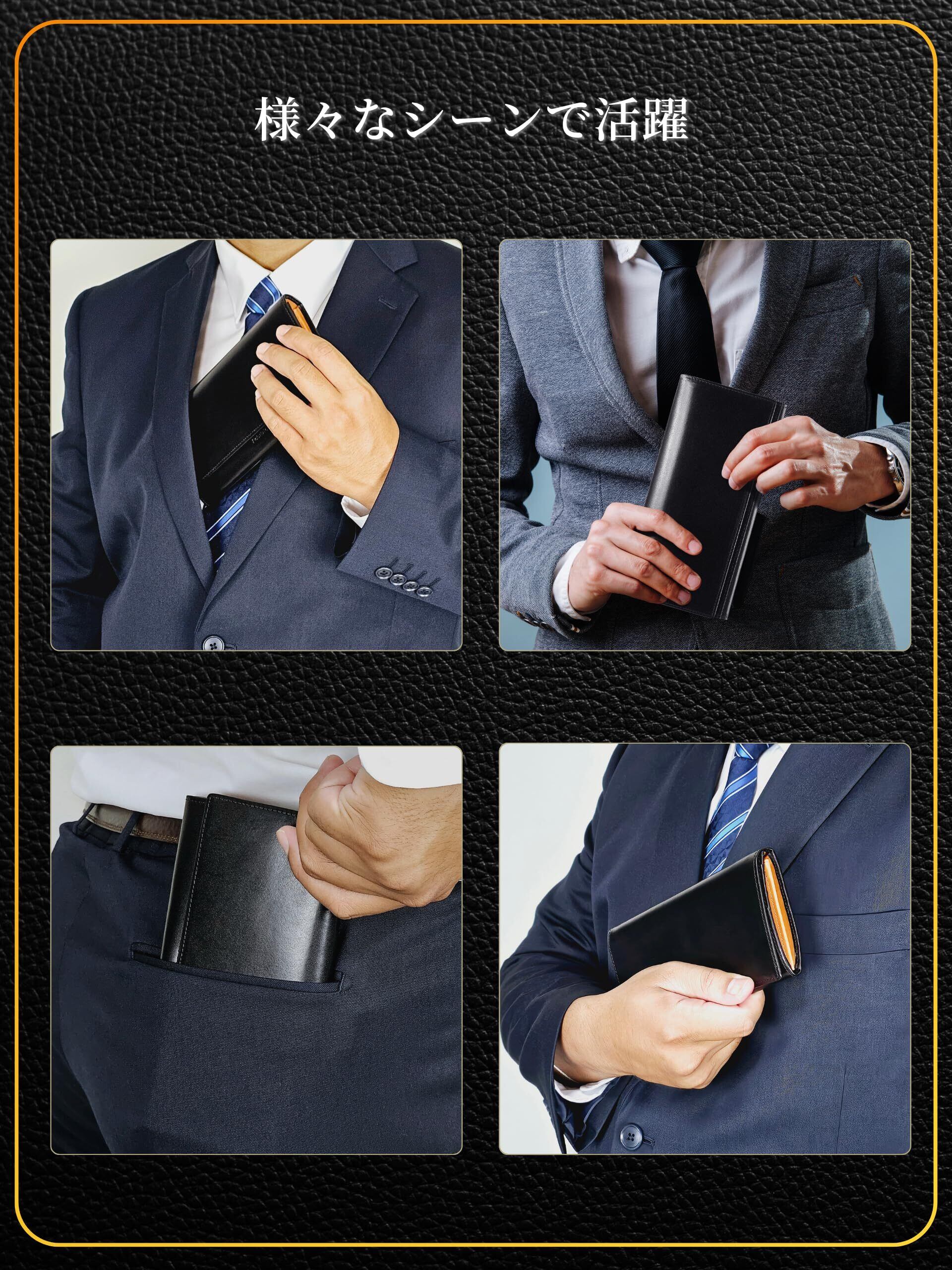 [ファブリツィオ] 財布 メンズ レディース 長財布 2つ折り マチ付き 小銭入れ 薄い 大容量 カード21枚 使いやすい イタリアン レザー 一流の革職人が作る 本革 YKKファスナー (ブラック)