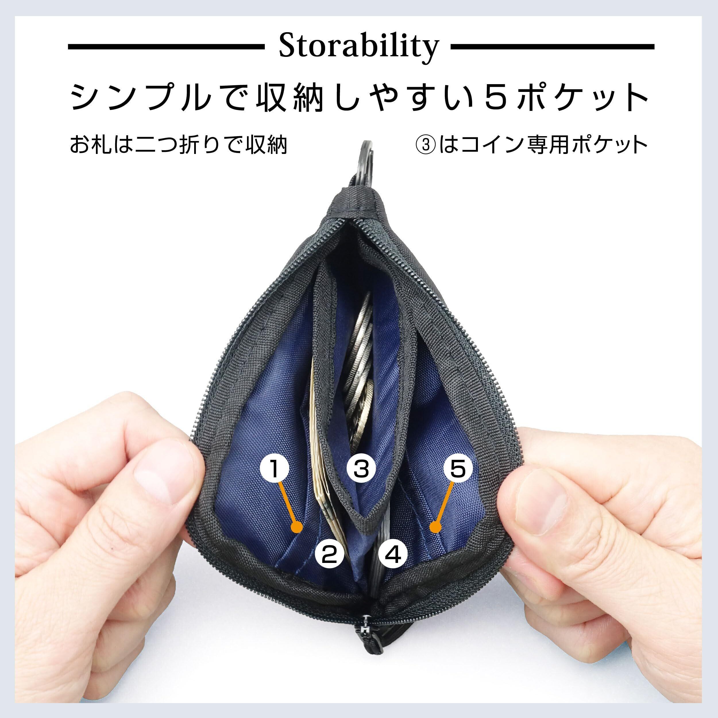 【仕様】◆外形サイズ:約W120xD98xH11mm ※突起部除く ◆重量:約26g ◆ポケット数:コインポケットx1、フリーポケットx4 ◆主要素材:ポリエステル生地 【企画・設計】日本 【量産】中国工場