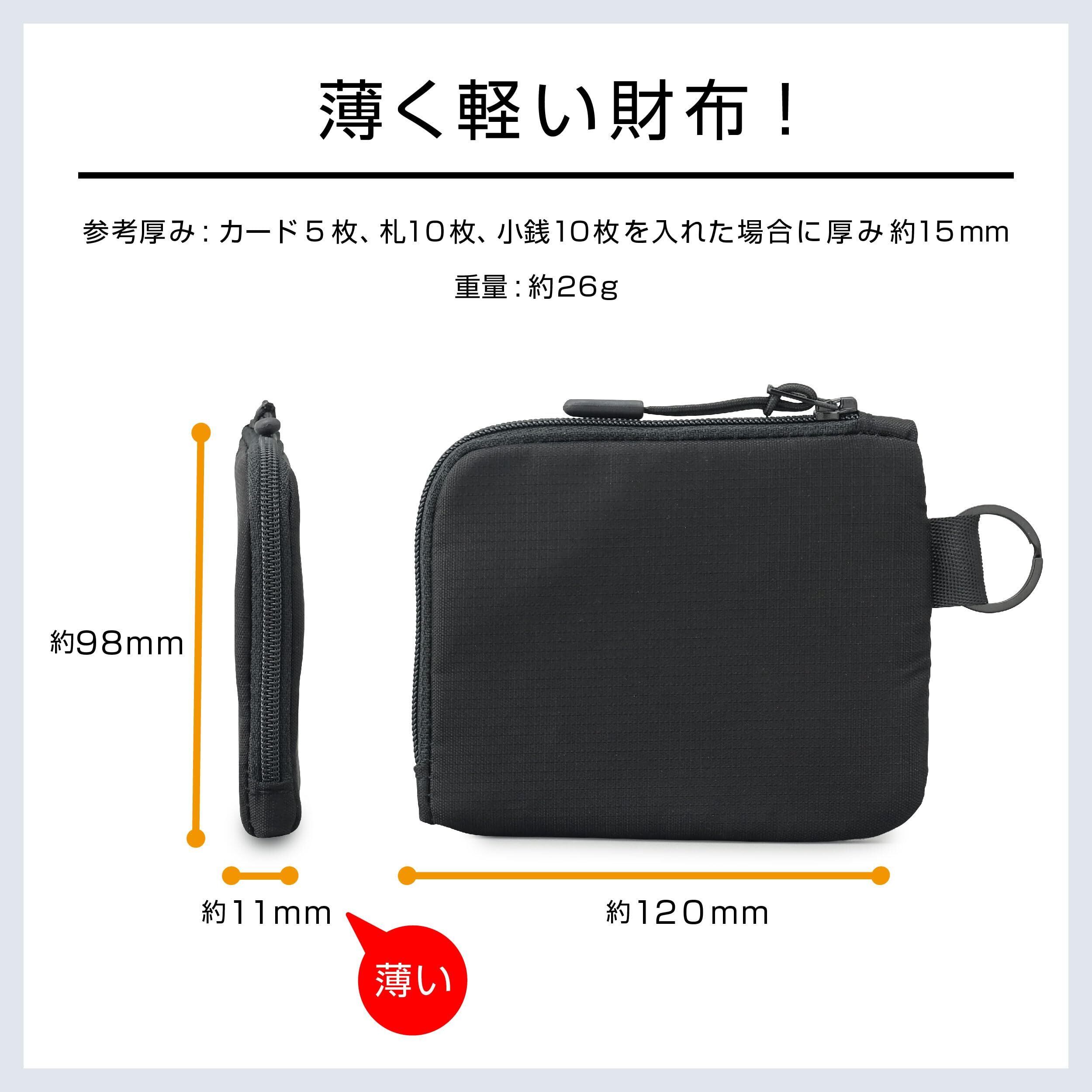 【特徴】◆ファスナーはYKK製を使用。◆YKK製ロックスライダーを採用。振動などでスライダーが勝手に開かない! ◆ファスナーガード付き。ファスナーがお札を噛みにくい。◆ポケットに収納しやすい薄い財布! ◆撥水性のあるリップストップ生地を使用! ◆鍵やストラップの取付け可能なリング付き。