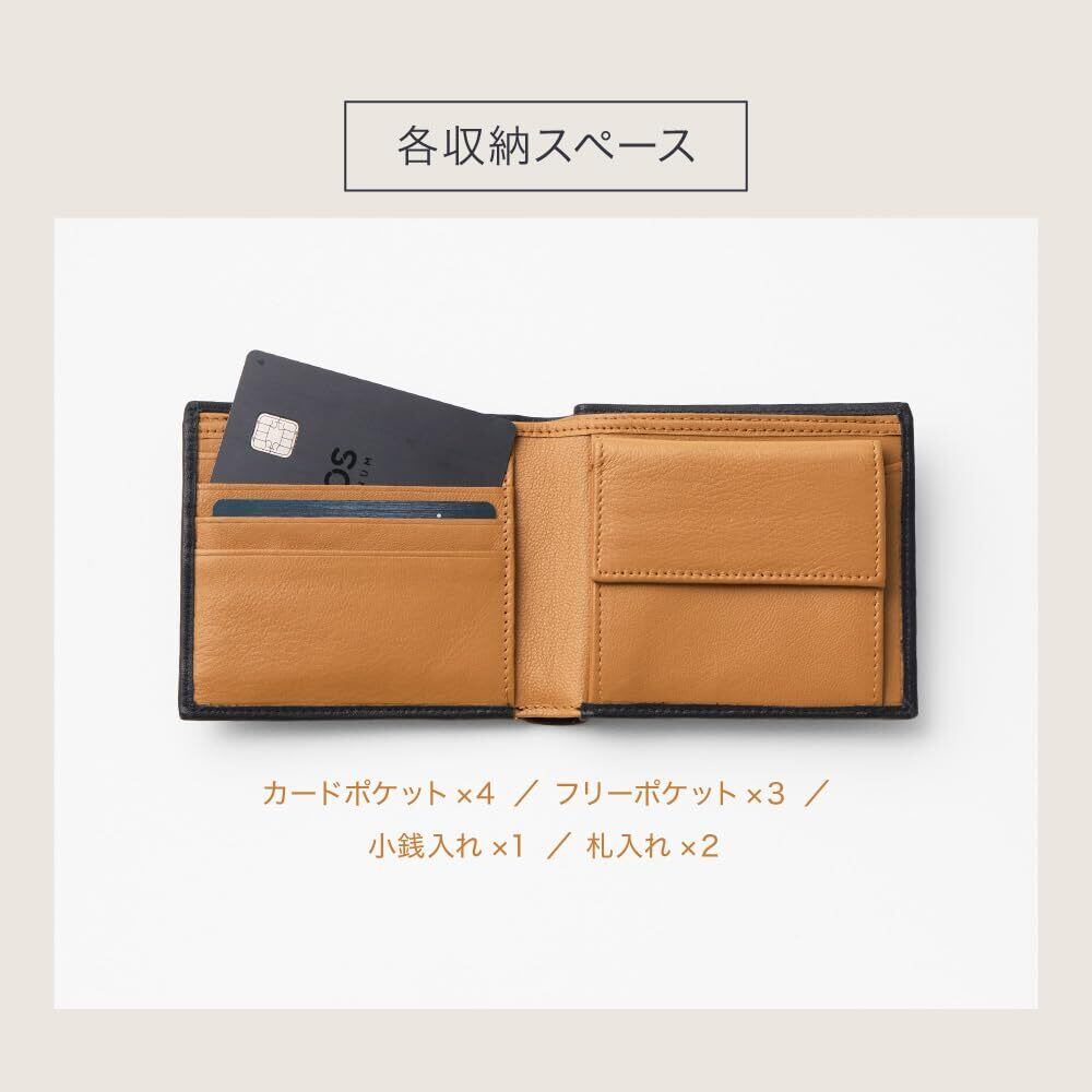 ①【こだわりの本革二つ折り財布】ズボンの後ろポケットやジャケットの内ポケットに入れることが多い二つ折り財布だからこそ、丈夫で型くずれしにくい上質な本革を使用しております。
