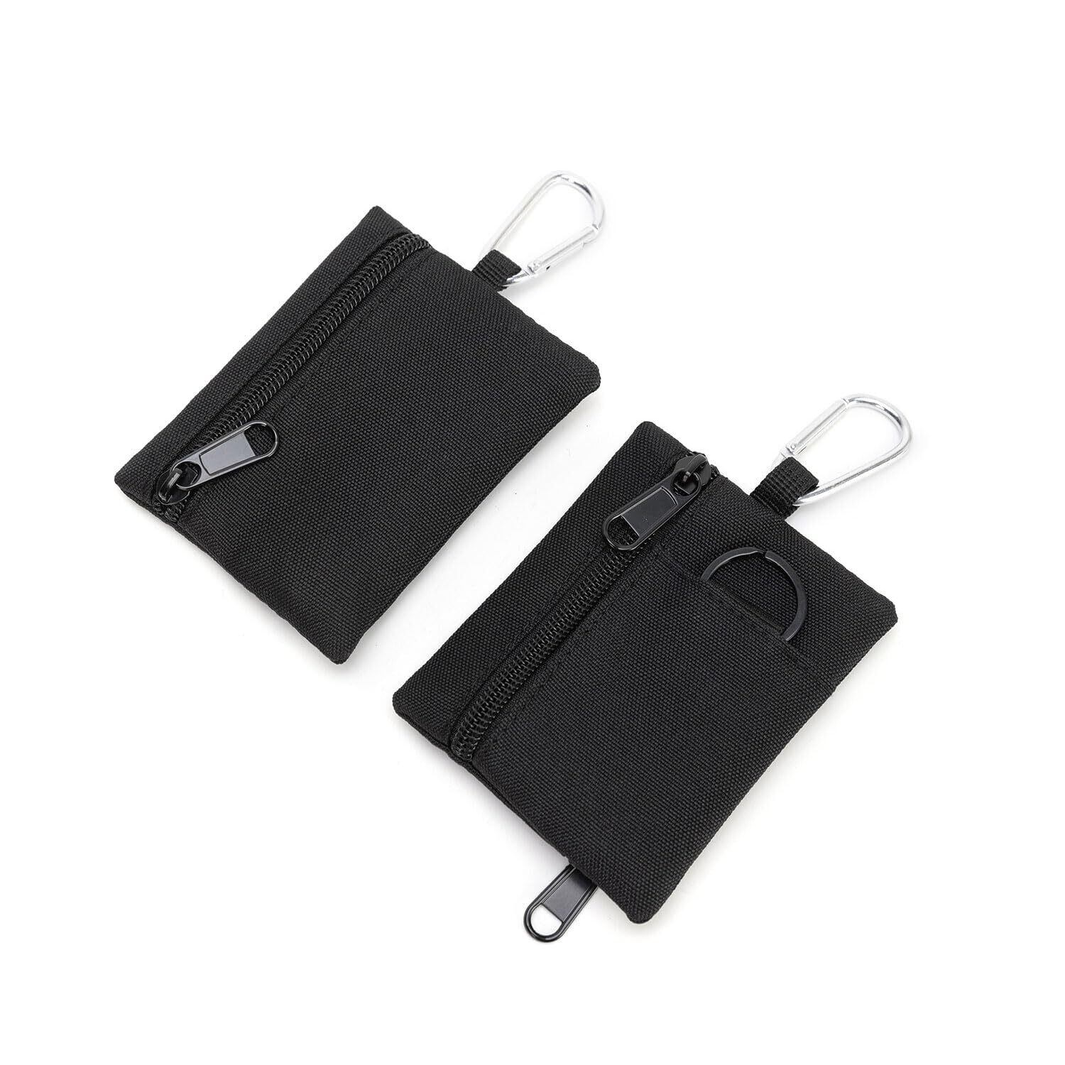 コインケース キーホルダー 小銭入れ アウトドア ナイロン メンズ レディース カラビナ コンパクト カード入れ ケース コード付き 吊り下げ ミニマリスト パスケース (Black)