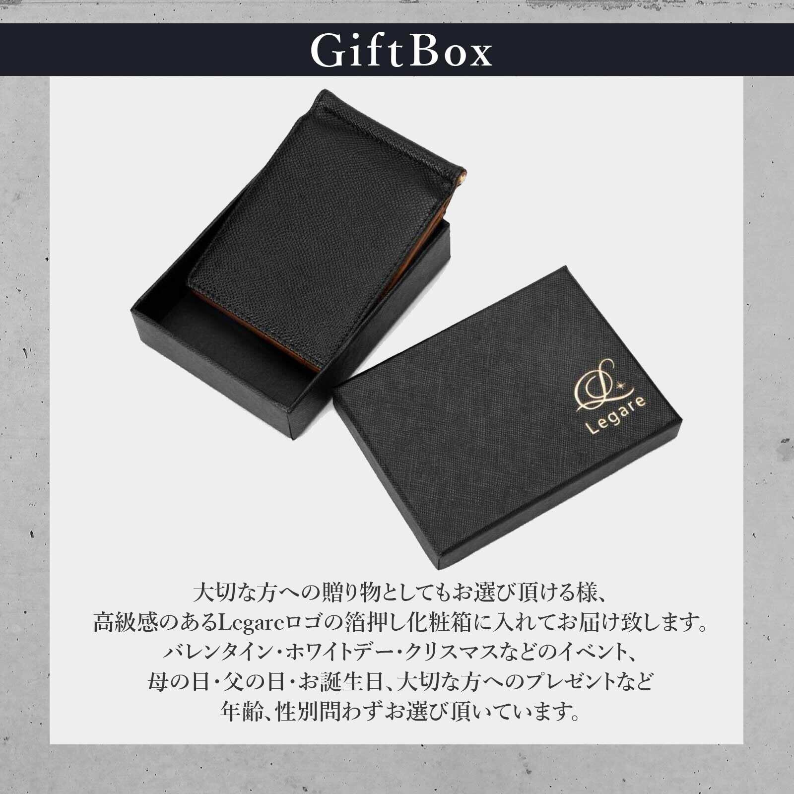 Legare(レガーレ) 小銭入れ付き 本革 マネークリップ 札はさみ 10色(オリジナル化粧箱入り) (ブラック)