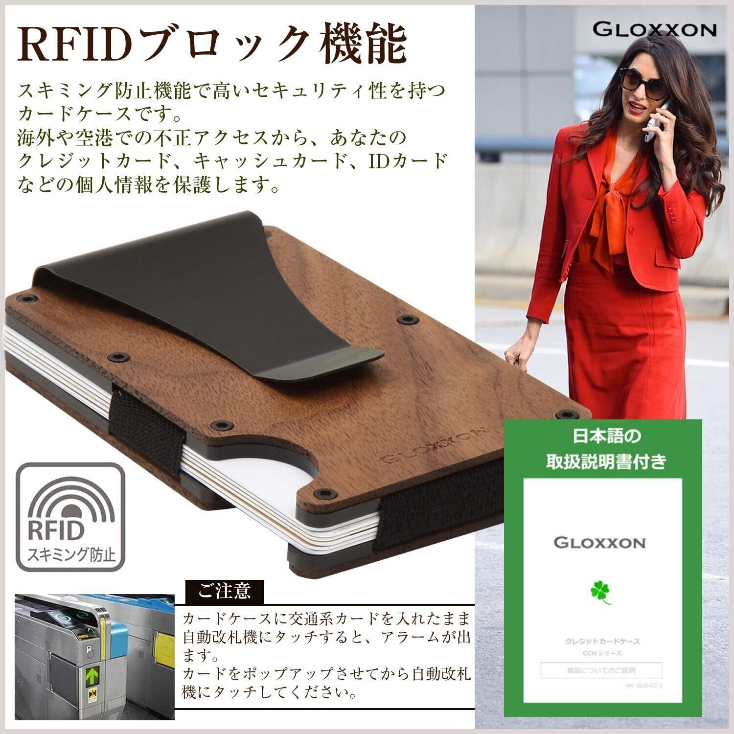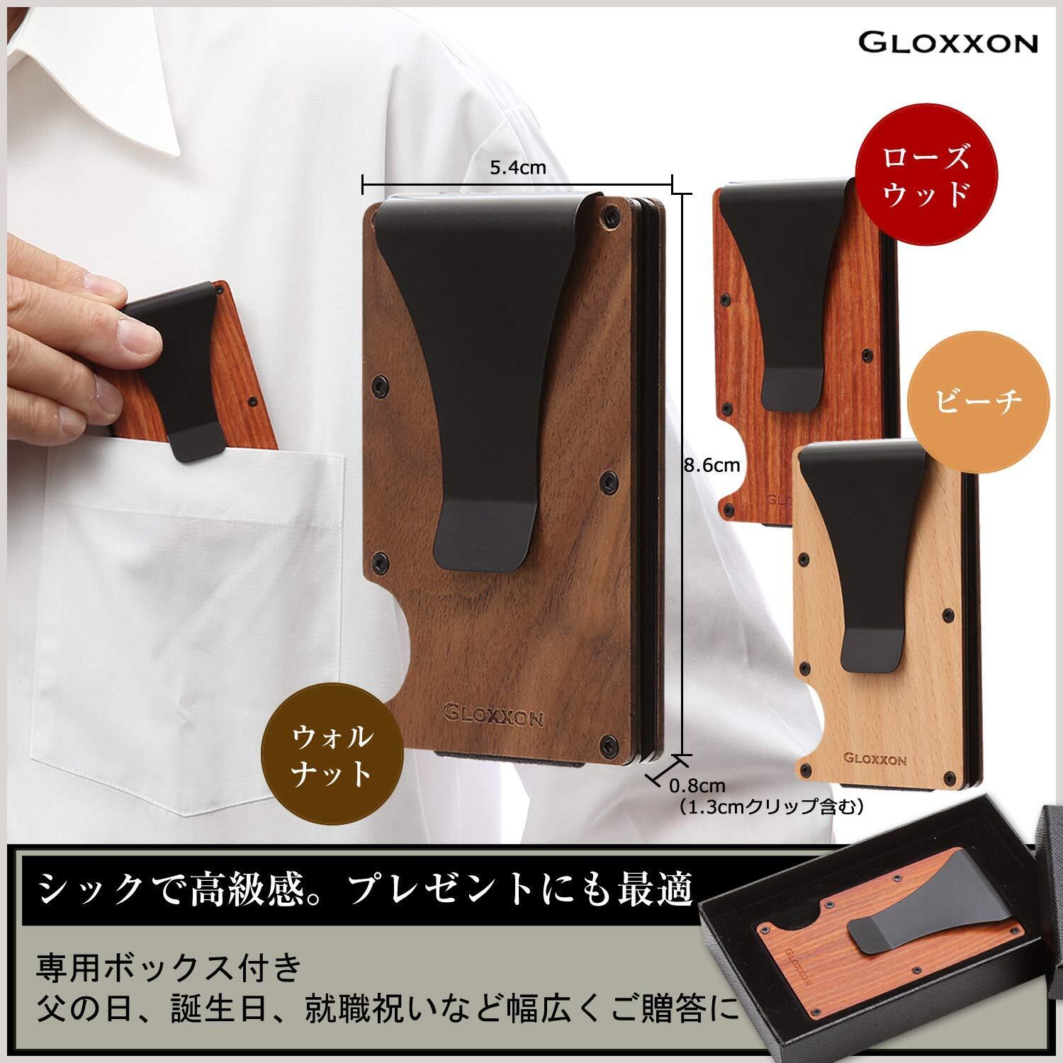 [GLOXXON] クレジットカードケース マネークリップ 軽量 大容量 コンパクト スキミング防止 天然木 カード入れ 木目 ギフト 磁気防止 メンズ レディース