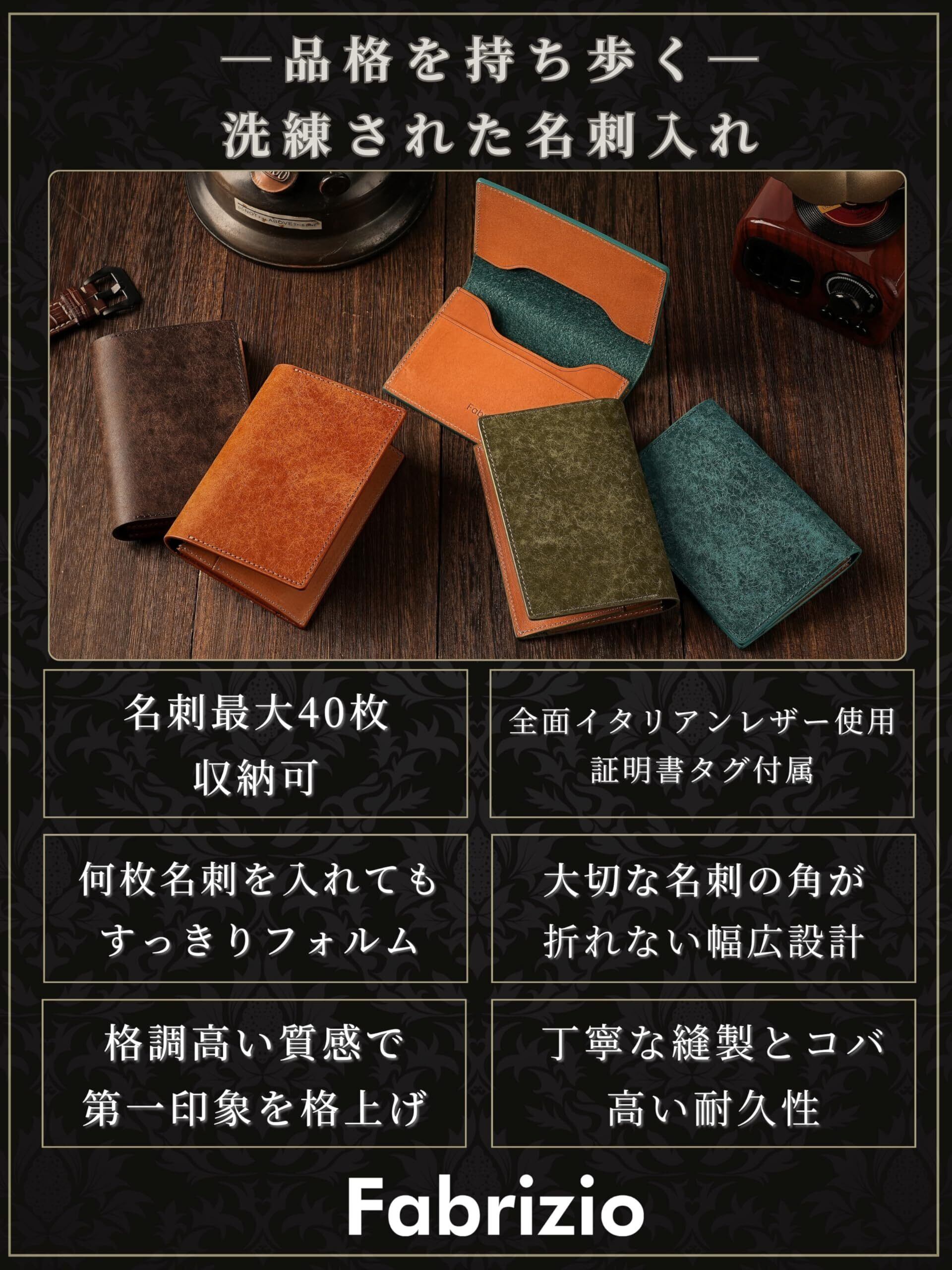 [ファブリツィオ] 名刺入れ メンズ レディース めいしいれ 名刺ケース 高級 イタリアン レザー 薄型 おしゃれ 大容量 名刺いれ 男性 女性 本革 (ペトローリオ)
