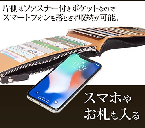 カードポケット×17 + 写真ポケットx1 お札ポケット×1、ファスナー付きポケット×1