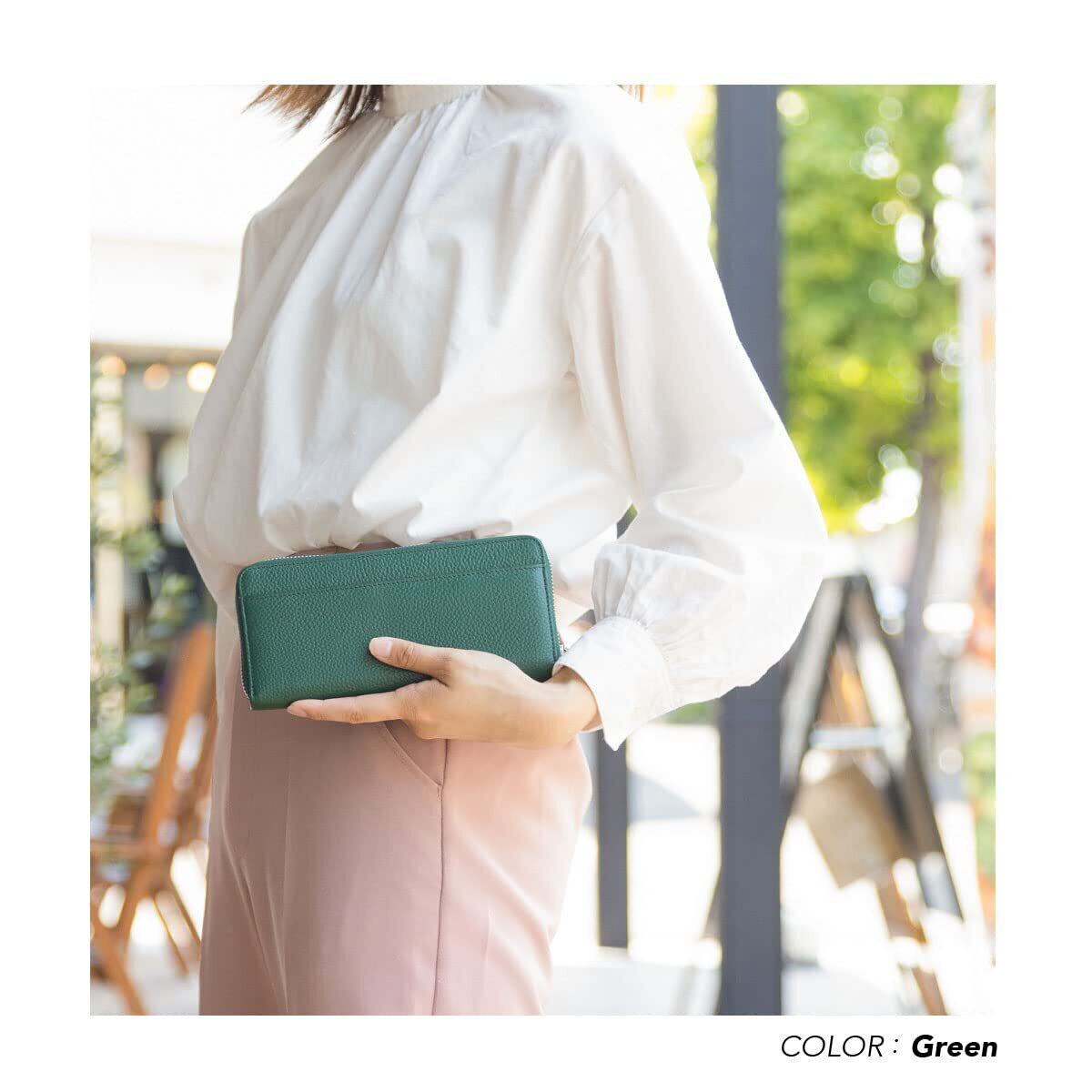 [HIGH FIVE] 財布 レディース 大容量 じゃばら 長財布 本革 ギャルソン レシートと小銭を自動で仕分け 多機能 ウォレット コインスルー グリーン