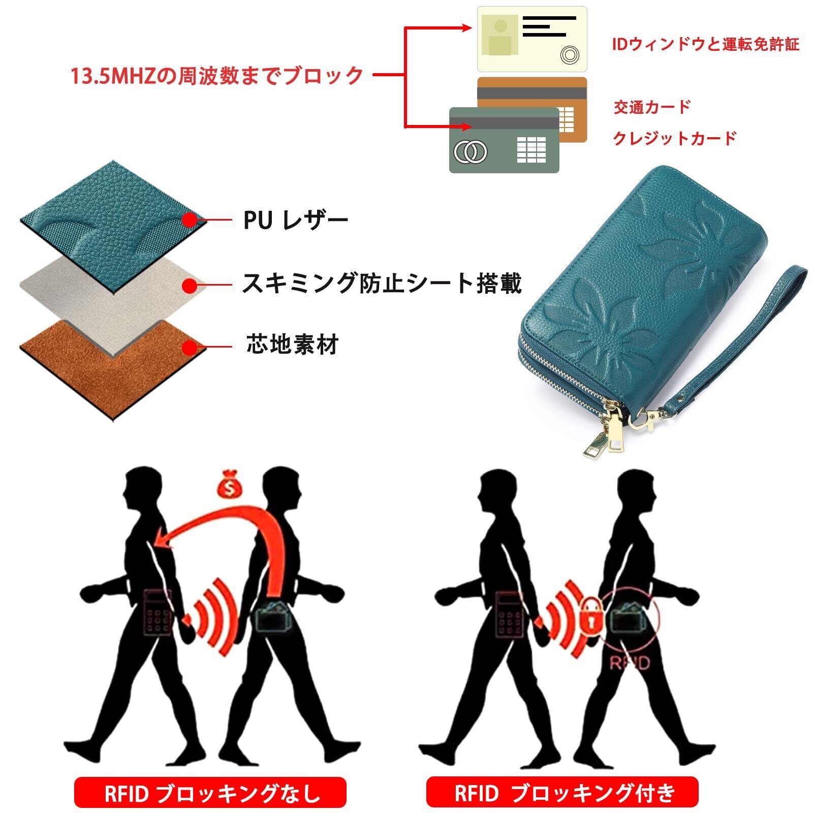 【RFID & スキミング防止機能】レディース 長財布には裏地に特殊な素材を採用し、デジタル盗難防止と磁気防止機能があり、カード情報のセキュリティを保護します。主に、より先進的な超高周波RFIDリーダーの閲覧や情報のコピーをブロックするために使されます。