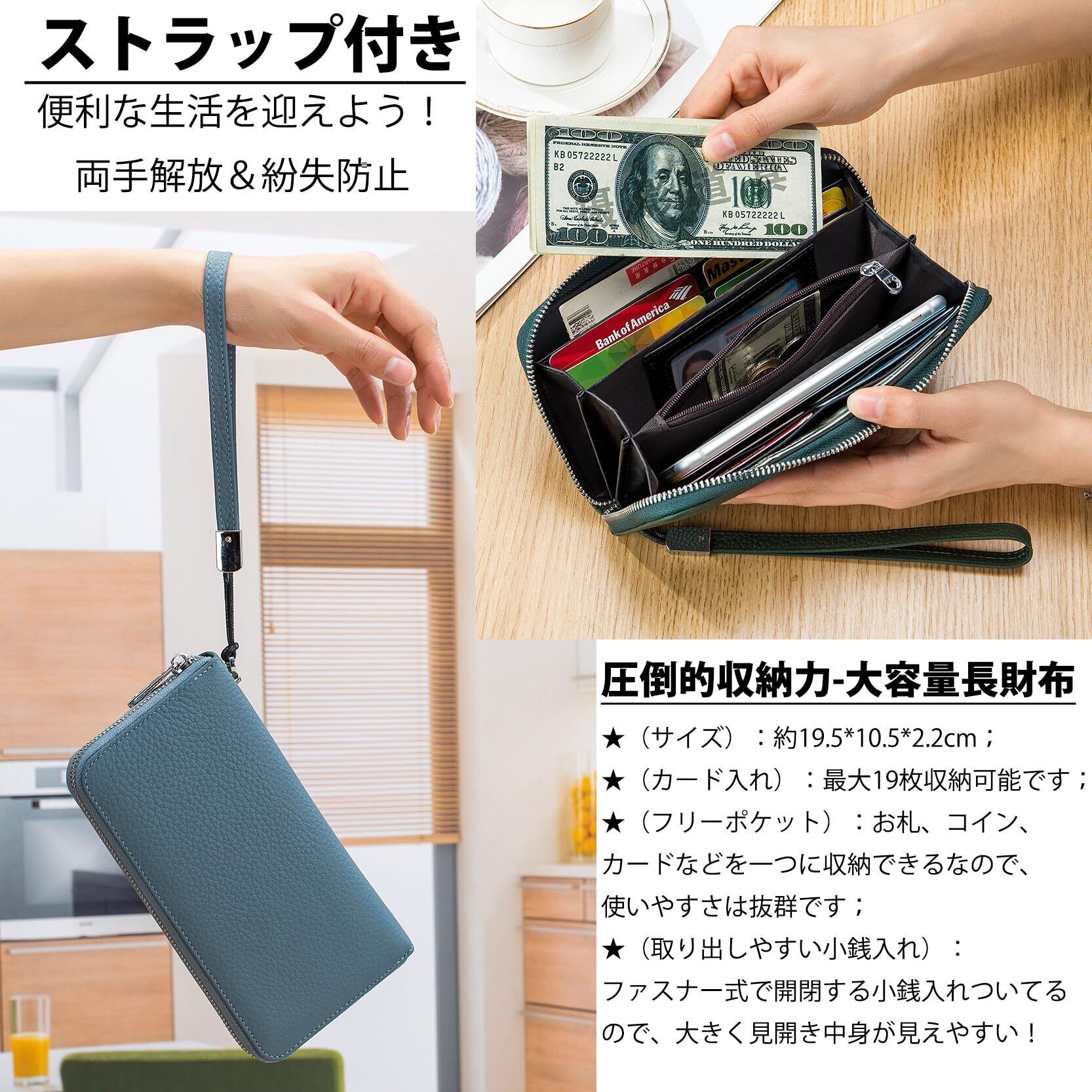 [Bearneko] 財布 長財布 本革 大容量 スキミング防止 財布 レディース メンズ 小銭入れ 薄型 軽量 仕分け 多機能 シンプル スマホポーチ ストラップ付き (ブルー)
