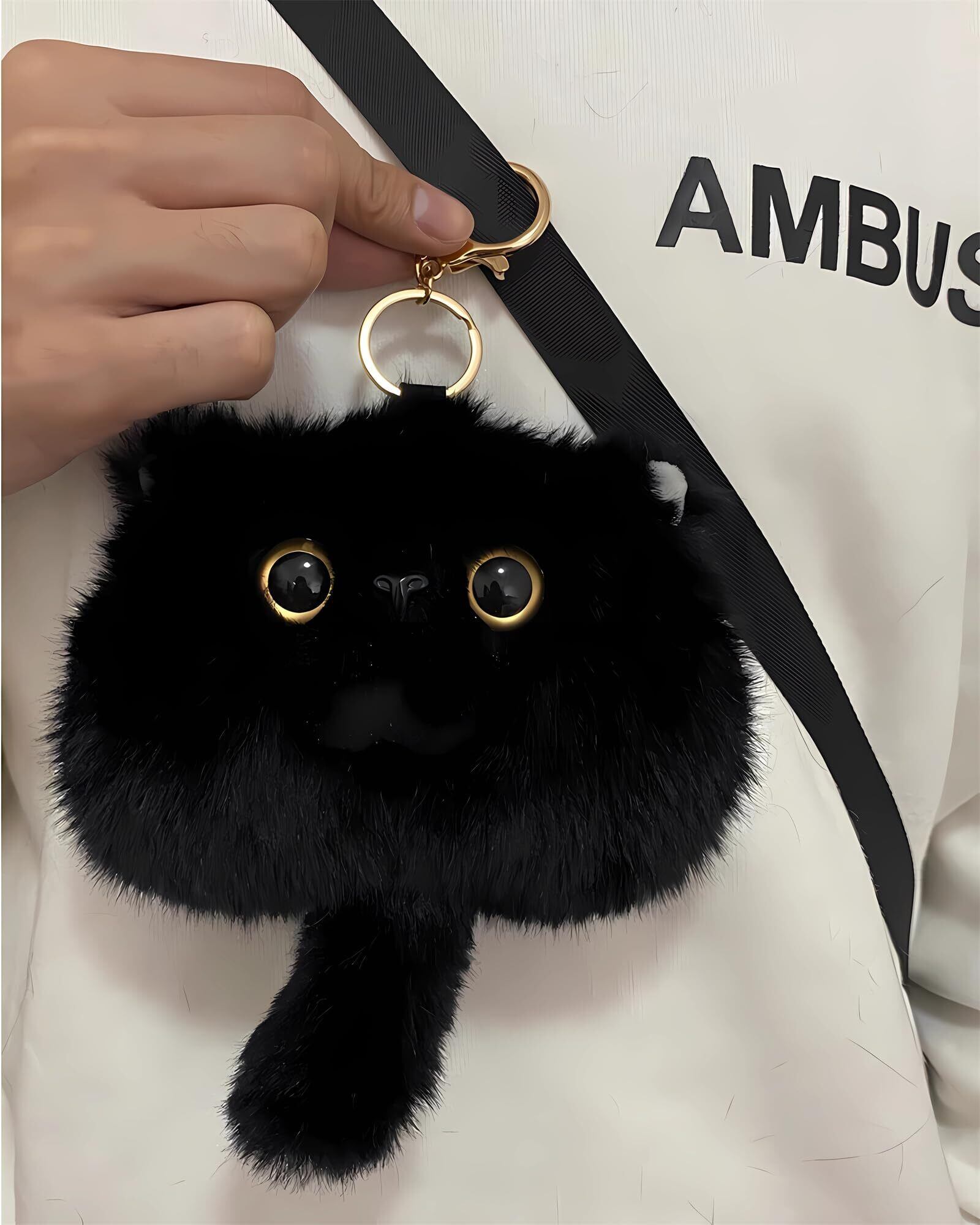 [HUIJUFU] かわいい猫のぬいぐるみ小銭入れキーホルダー女性の誕生日プレゼント(黒色)