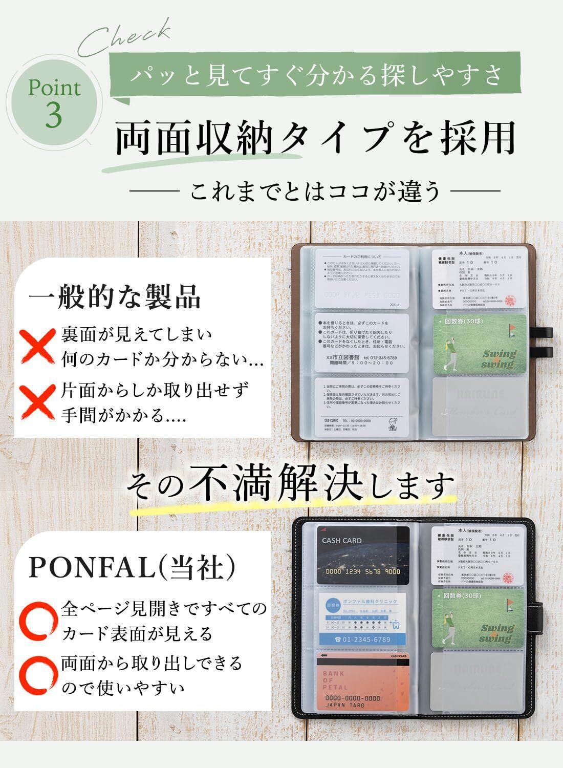 【必要なカードがすぐに探せる】一般的なカードケースは片側だけに収納する構造のため、開くとカードの裏面しか見えない部分があり、探しにくいことがあります。PONFALのカードケースは両面収納タイプのため、開けばすべてのカードの表面が見え、欲しいカードをすぐに見つけられます。