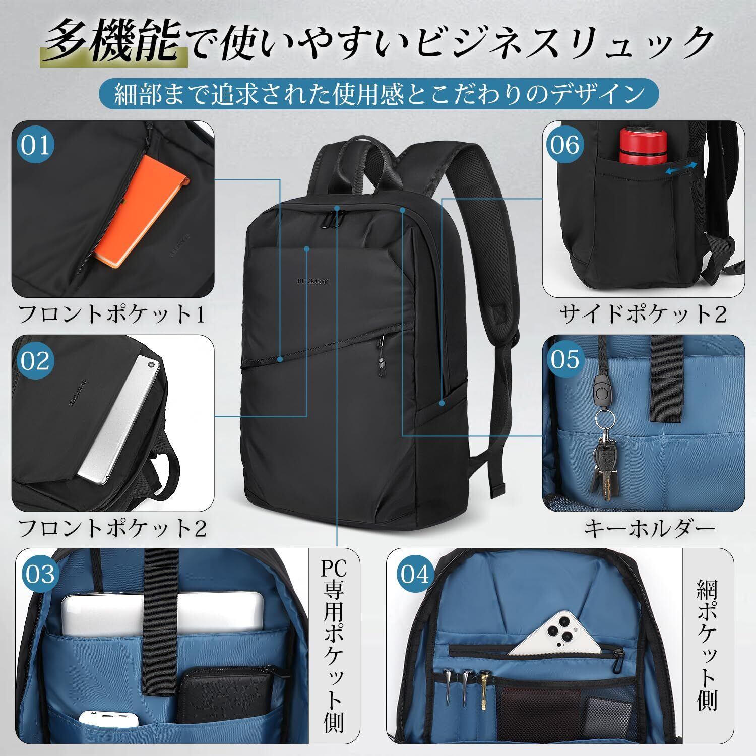 [BUKKUUE] リュック メンズ おしゃれ 人気 バックパック 大容量 防水 軽量 多機能 15.6インチPC ビジネスリュック アウトドア 通学 通勤 出張 旅行 りゅつく カジュアル 男女兼用 防災用品 災害対策 避難
