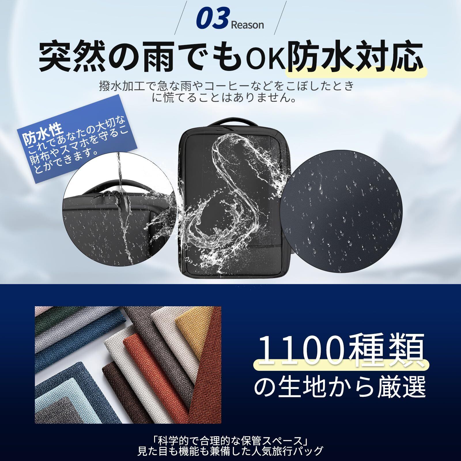【マチ拡張&大容量収納】サイズ:45×34×12cm(拡張前:約20L)/45×34×20cm(拡張後:約30L)ポケットの数:11個(外側1/内側10)。リュックサックの1つの前置外ポケットは、いつでも取り出したい小物を簡単に収納できます。独立したパソコンポケットがあり、15.6インチのノートパソコンと 11インチのiPadを完全に収納できます。また、パソコンポケットのインナークッションは防震緩衝材とマジックシールの閉鎖方式を採用し、重要なパソコンとタブレットを保護することができます。マチ拡張前、リュックの厚みはわずか12cmなので取り回しやすく、日常の通勤にぴったりでした。拡張後、合計約30Lの貯蔵スペースと分倉設計は、1泊2日の出張に必要なすべてのものを収容できます。通勤、出張、通学、旅行など様々な場合に合わせて利用できます。