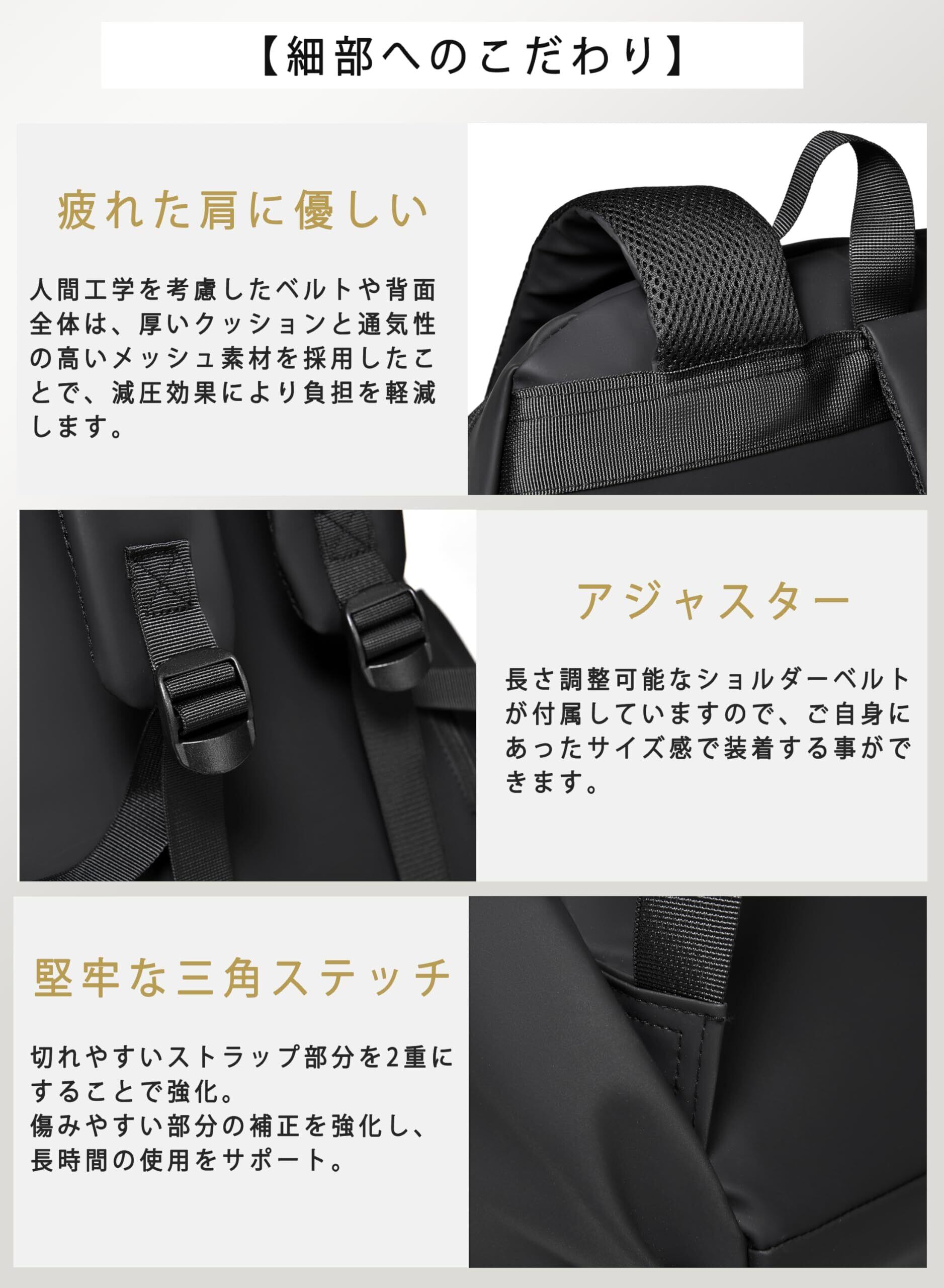 【高品質素材】高品質のポリエステルオックスフォード生地を採用し、優れた撥水性を持ち、急な雨や汚れからバッグの中身を守ります。耐摩耗性が高く、引き裂きに強く長持ちできます。背面には厚みのあるクッション材を内蔵し、長時間に背負っても楽々です。